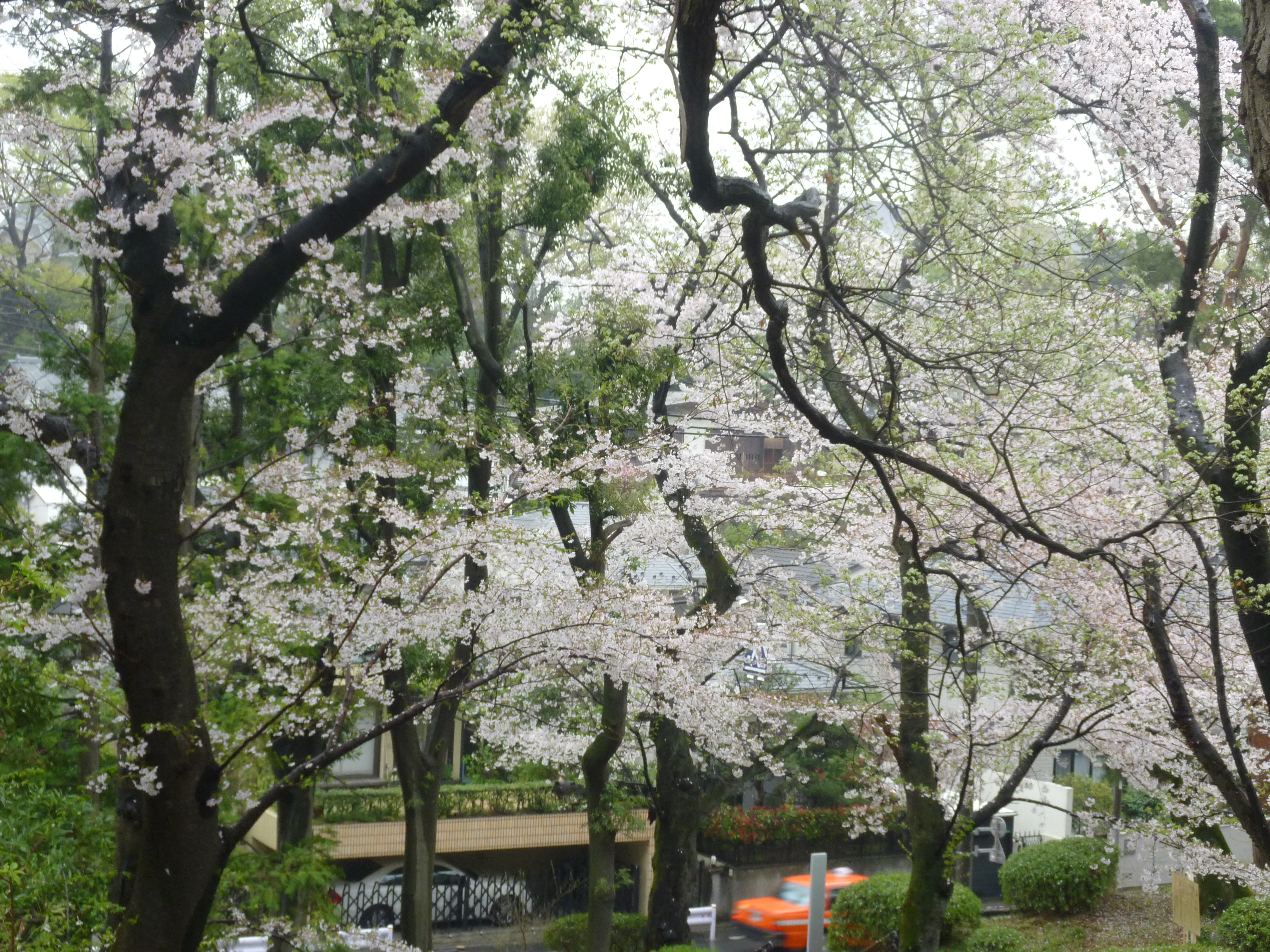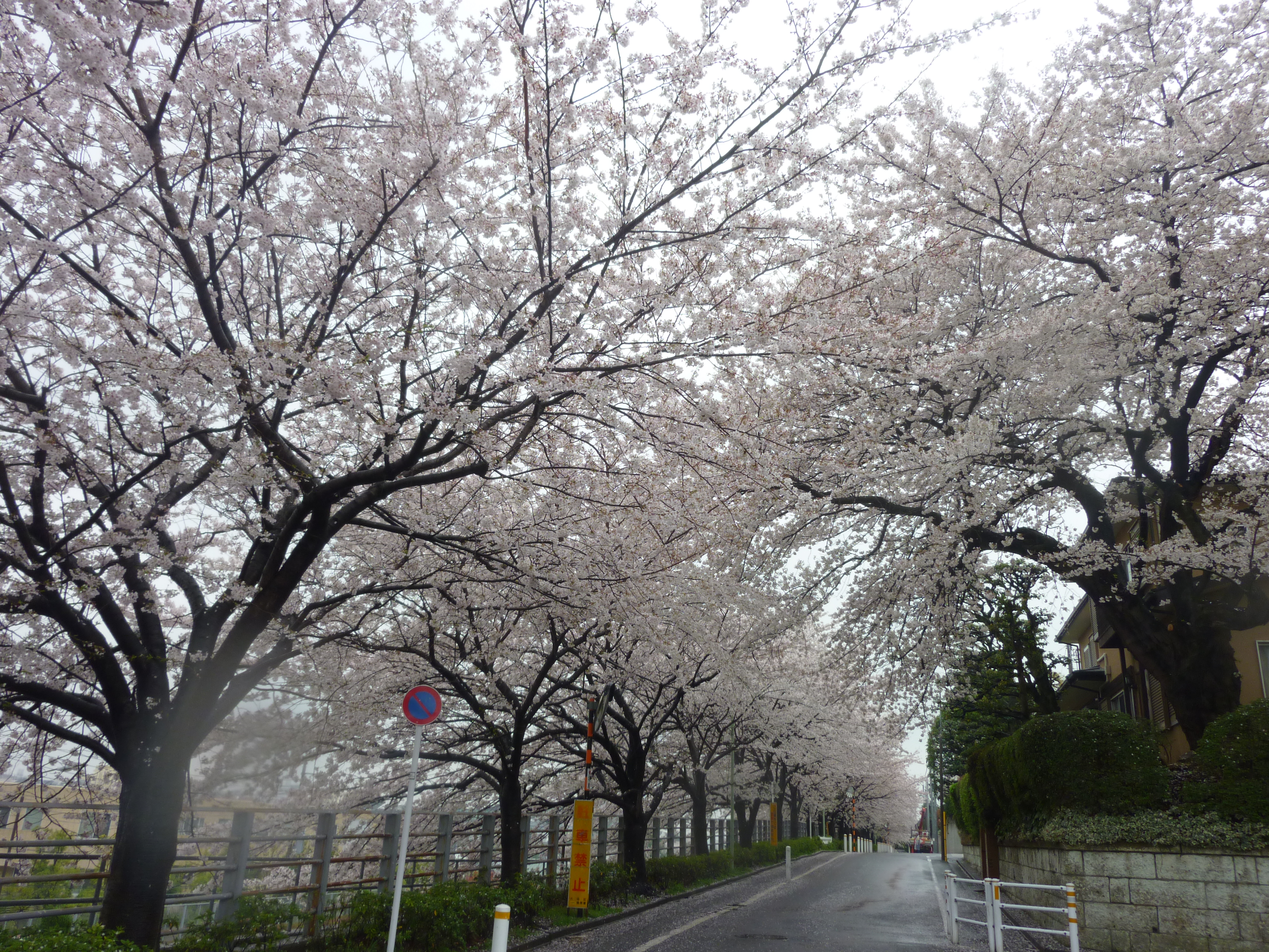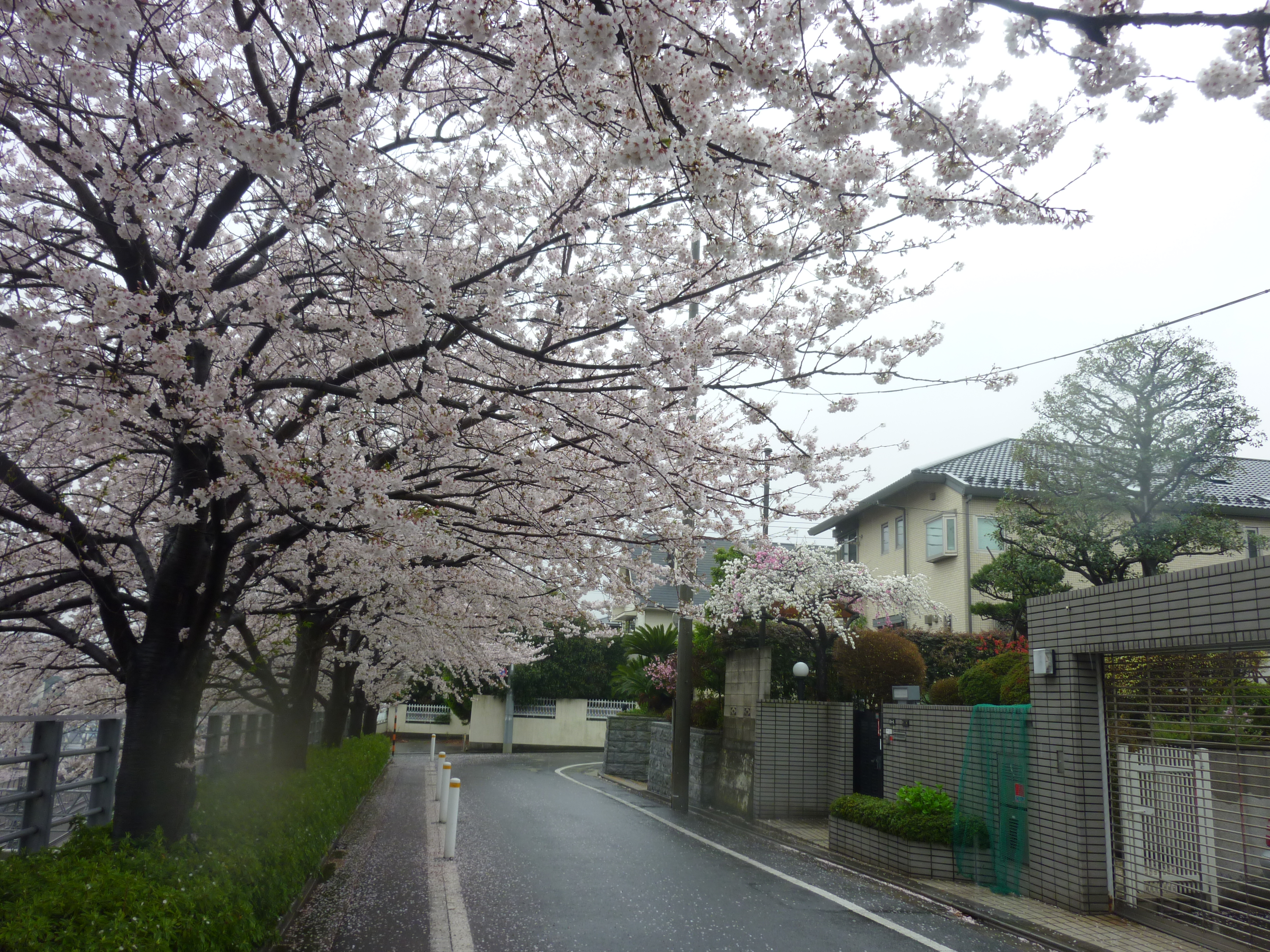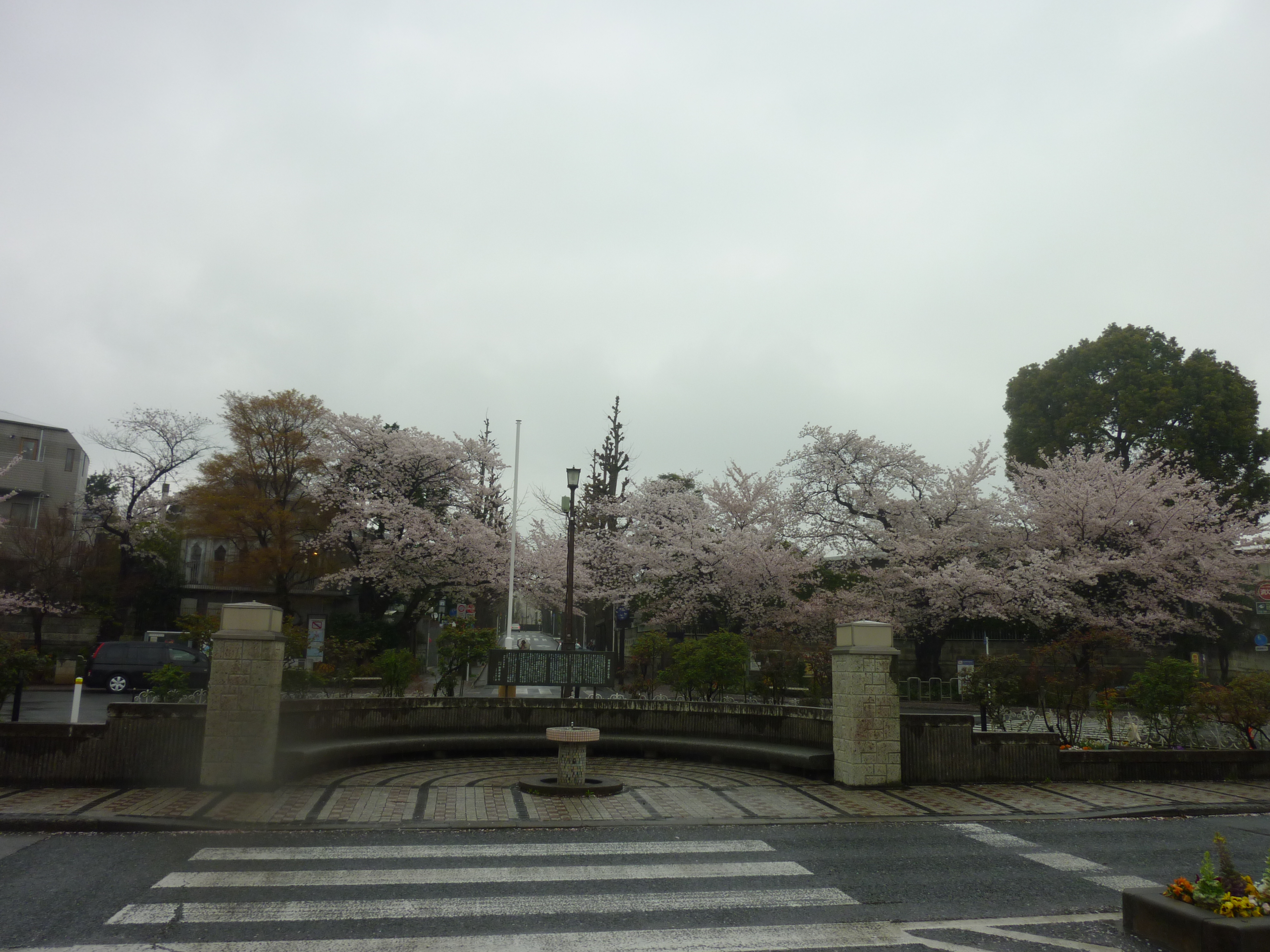 The weather was cold and it was raining the next morning. We went to Tamagawa (多摩川) Park to see the cherry blossoms. There were not many visitors because of the weather. Surrounding the Park are several luxury houses. We walked to the nearly Catholic Church and further away to a street that has cherry trees along the road side. The cherry blossoms are so beautiful in the light rain.