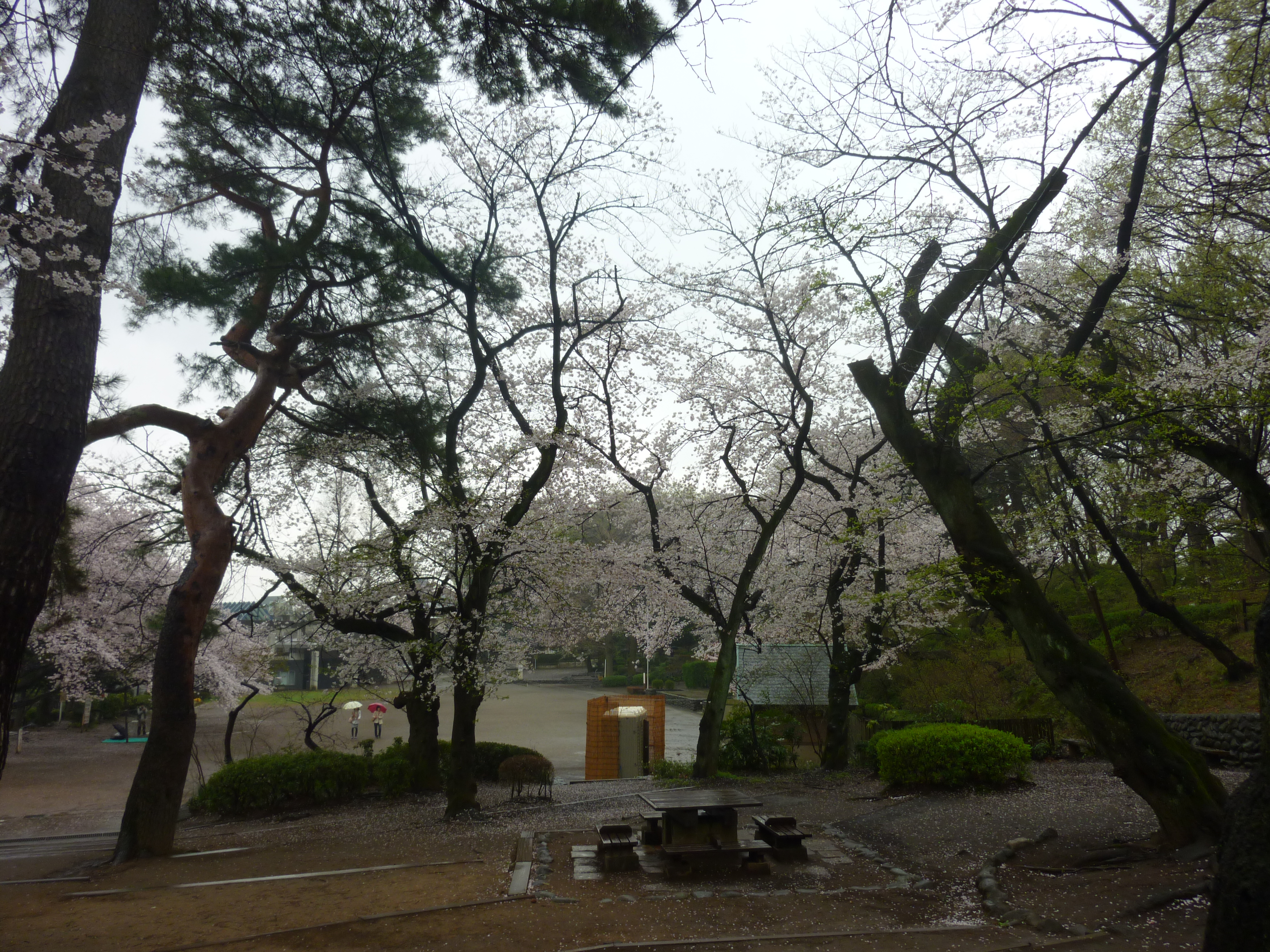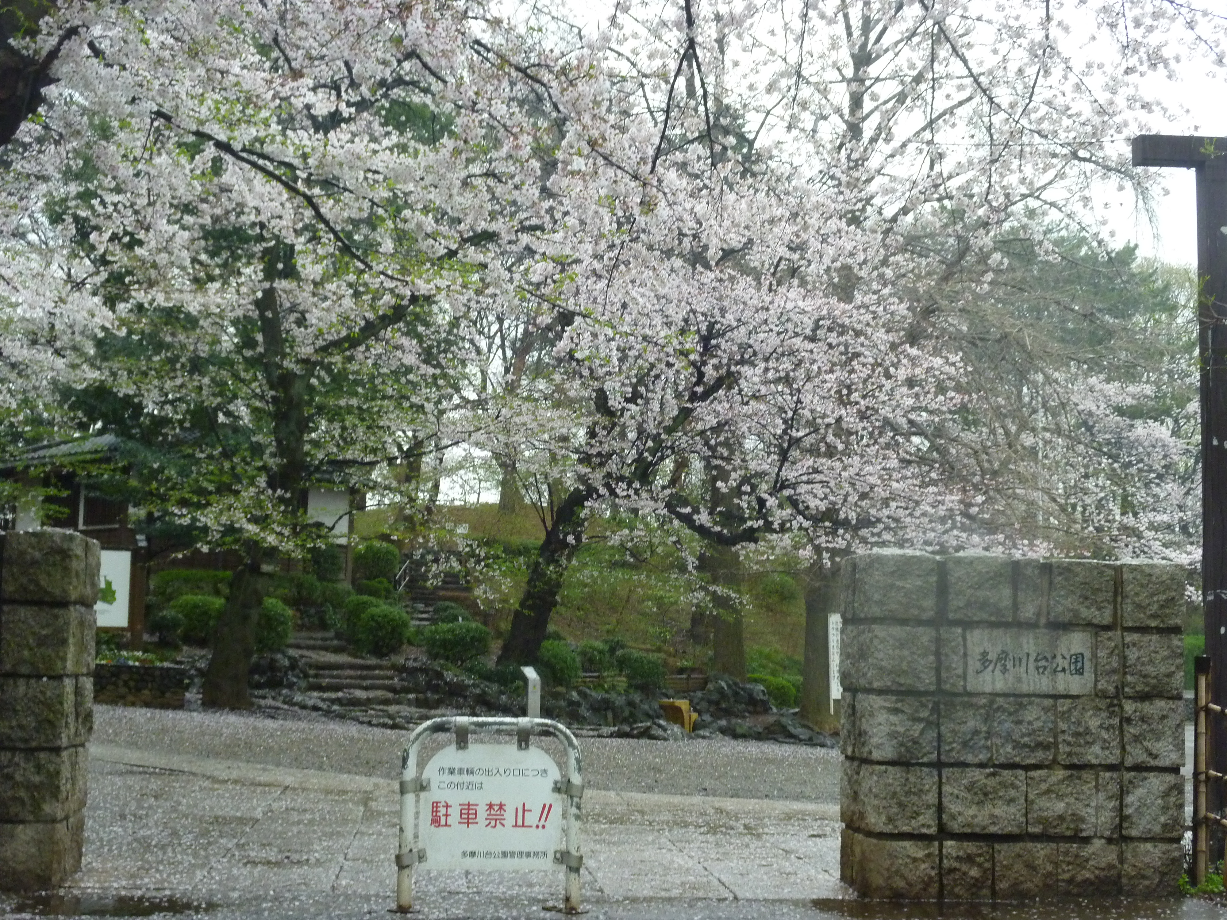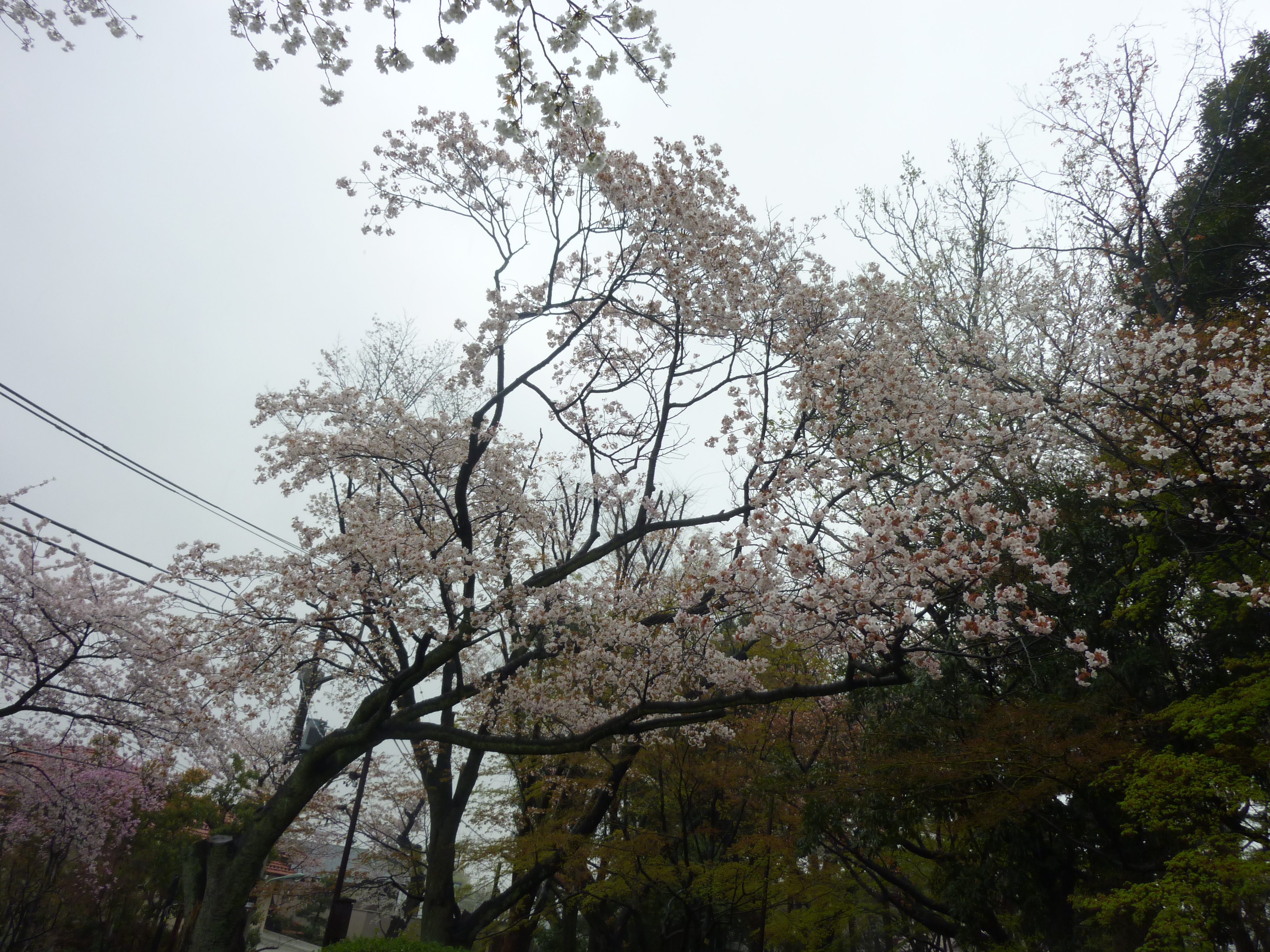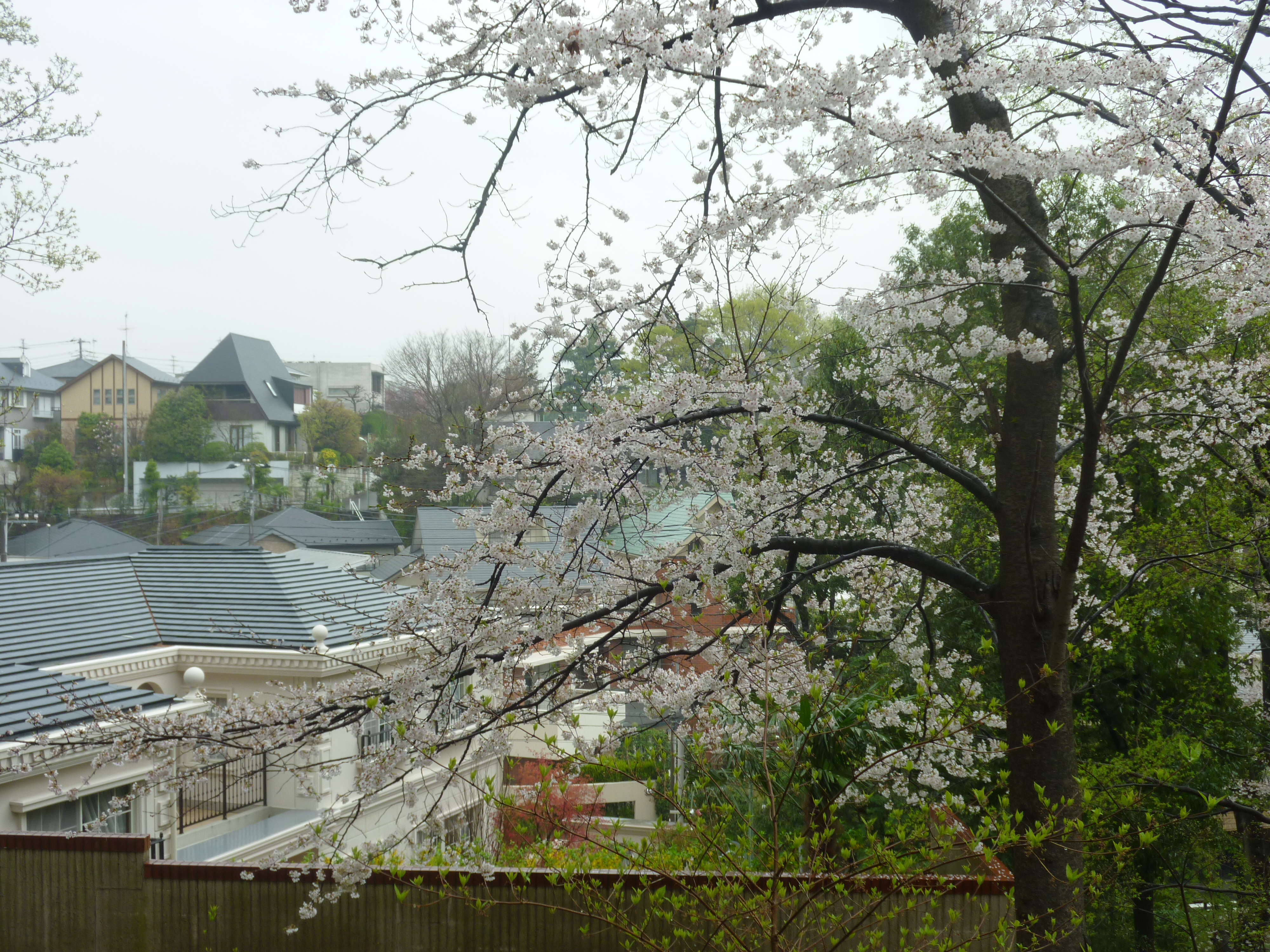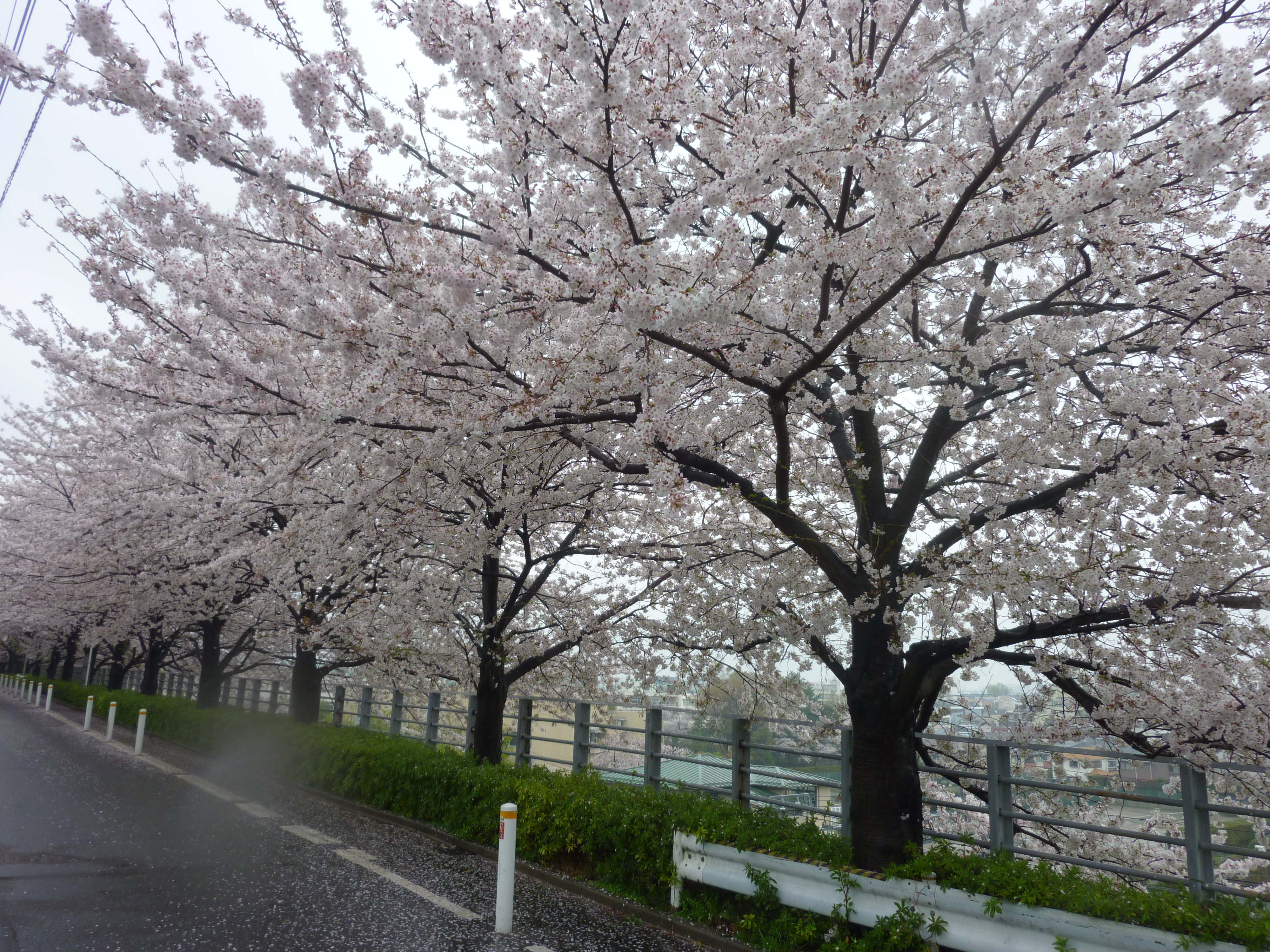 The weather was cold and it was raining the next morning. We went to Tamagawa (多摩川) Park to see the cherry blossoms. There were not many visitors because of the weather. Surrounding the Park are several luxury houses. We walked to the nearly Catholic Church and further away to a street that has cherry trees along the road side. The cherry blossoms are so beautiful in the light rain.