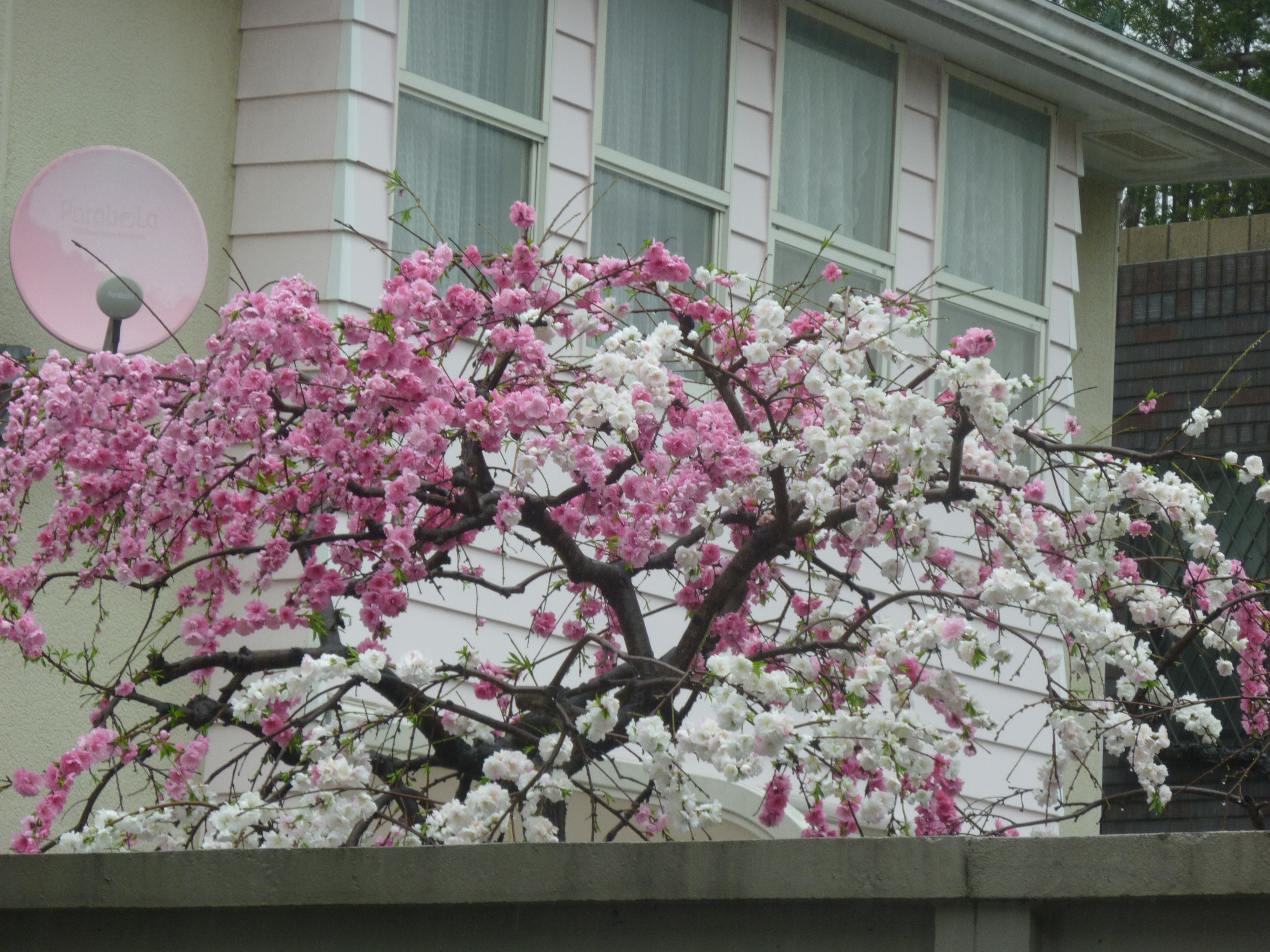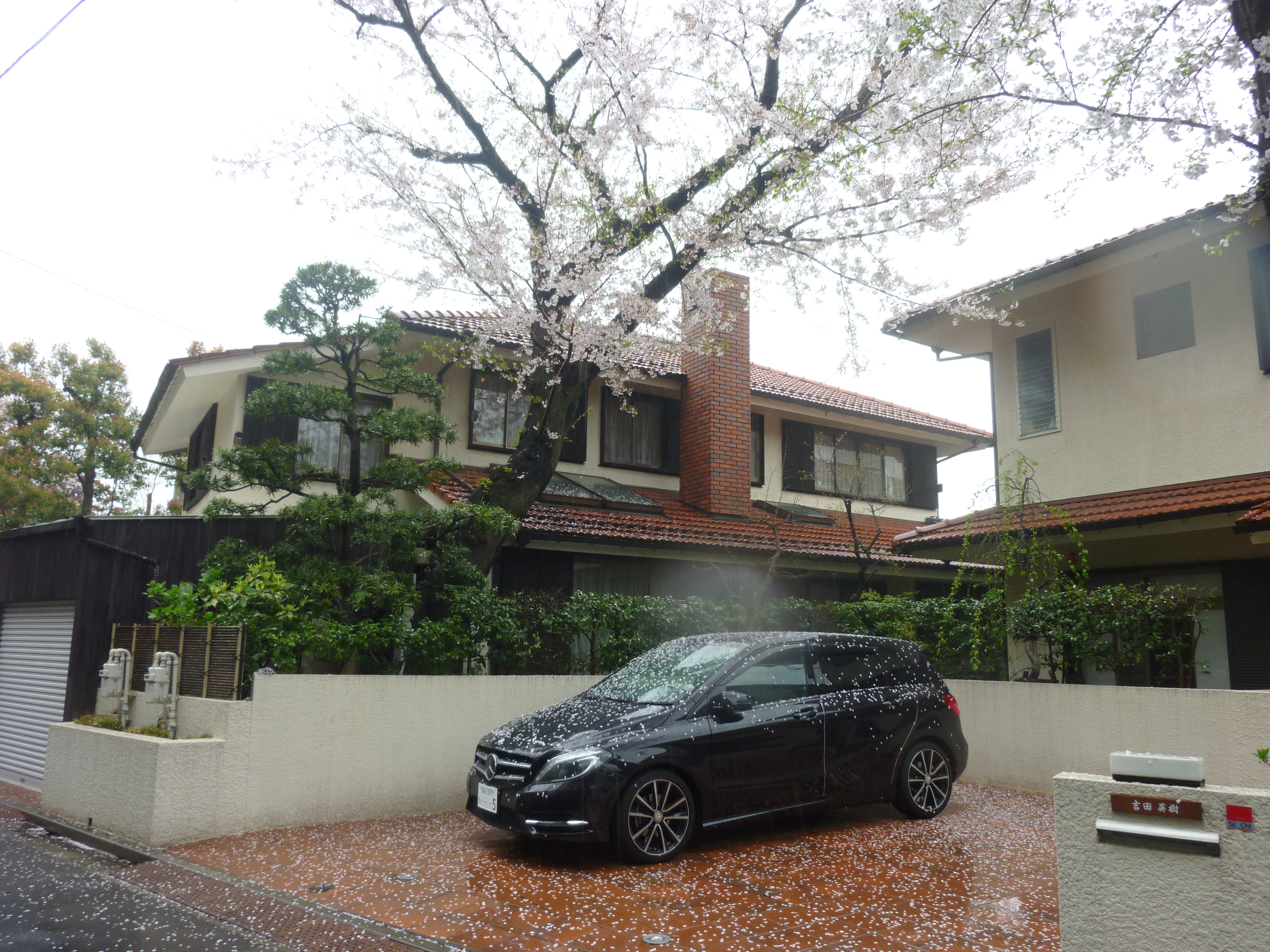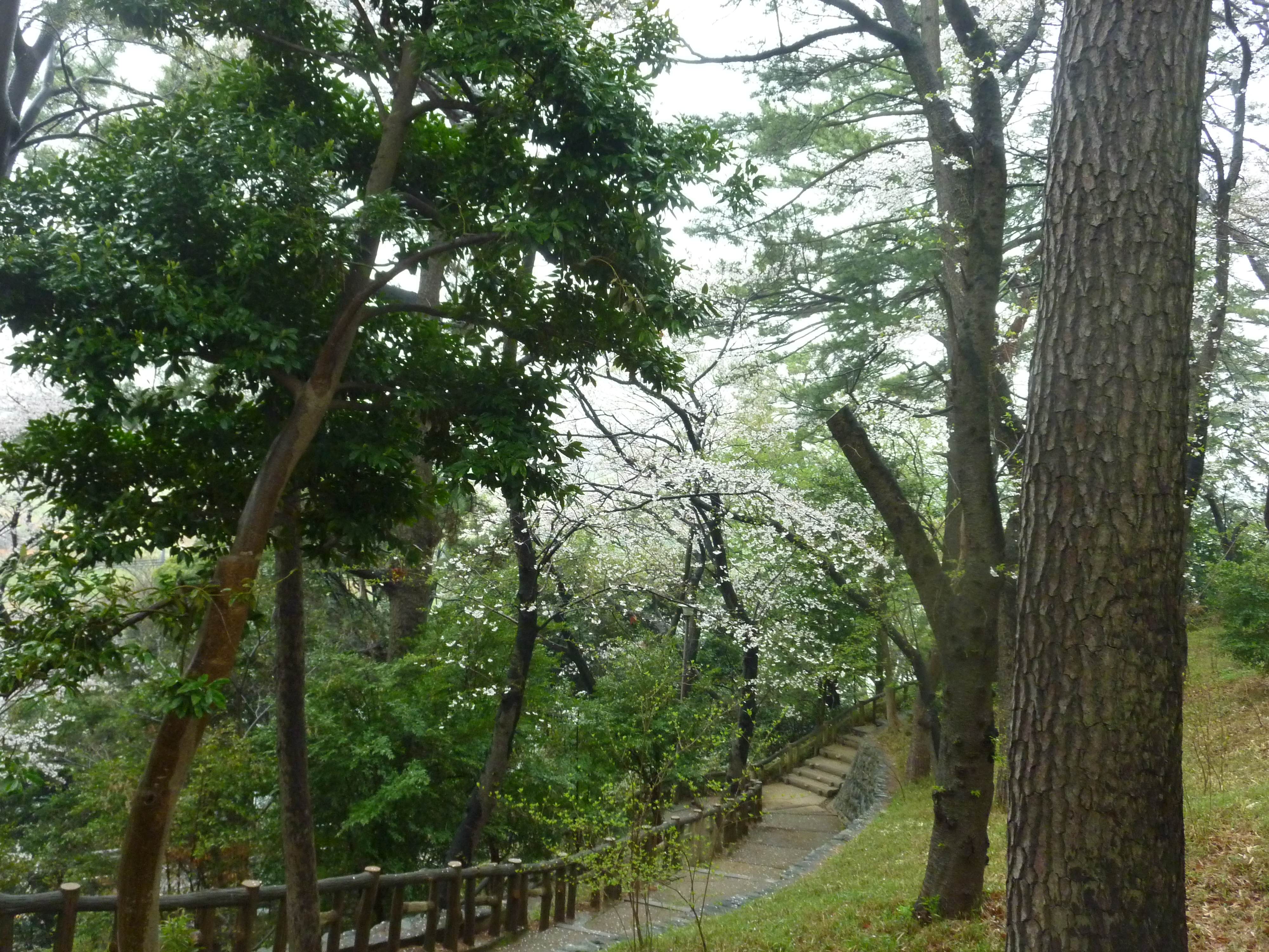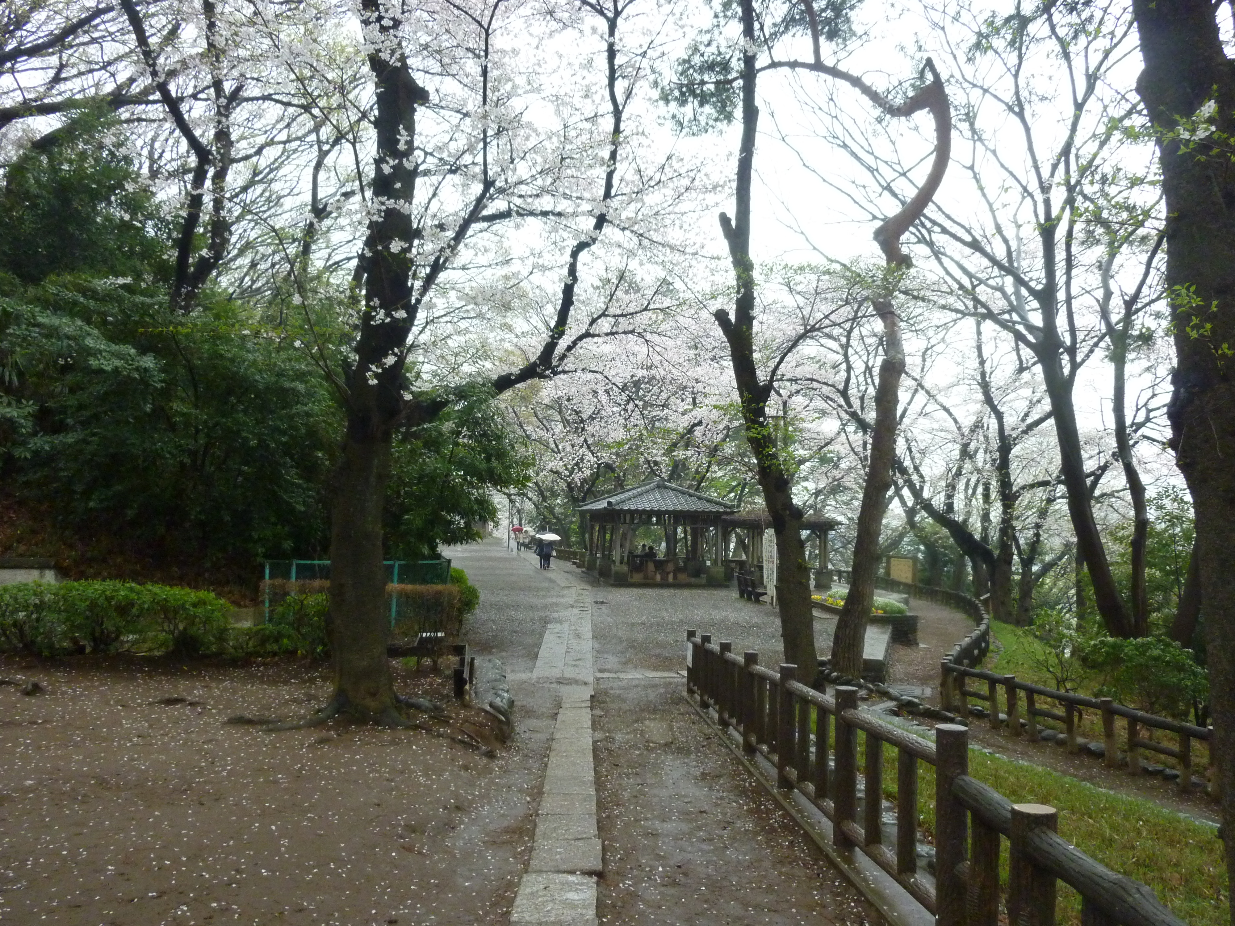 The weather was cold and it was raining the next morning. We went to Tamagawa (多摩川) Park to see the cherry blossoms. There were not many visitors because of the weather. Surrounding the Park are several luxury houses. We walked to the nearly Catholic Church and further away to a street that has cherry trees along the road side. The cherry blossoms are so beautiful in the light rain.