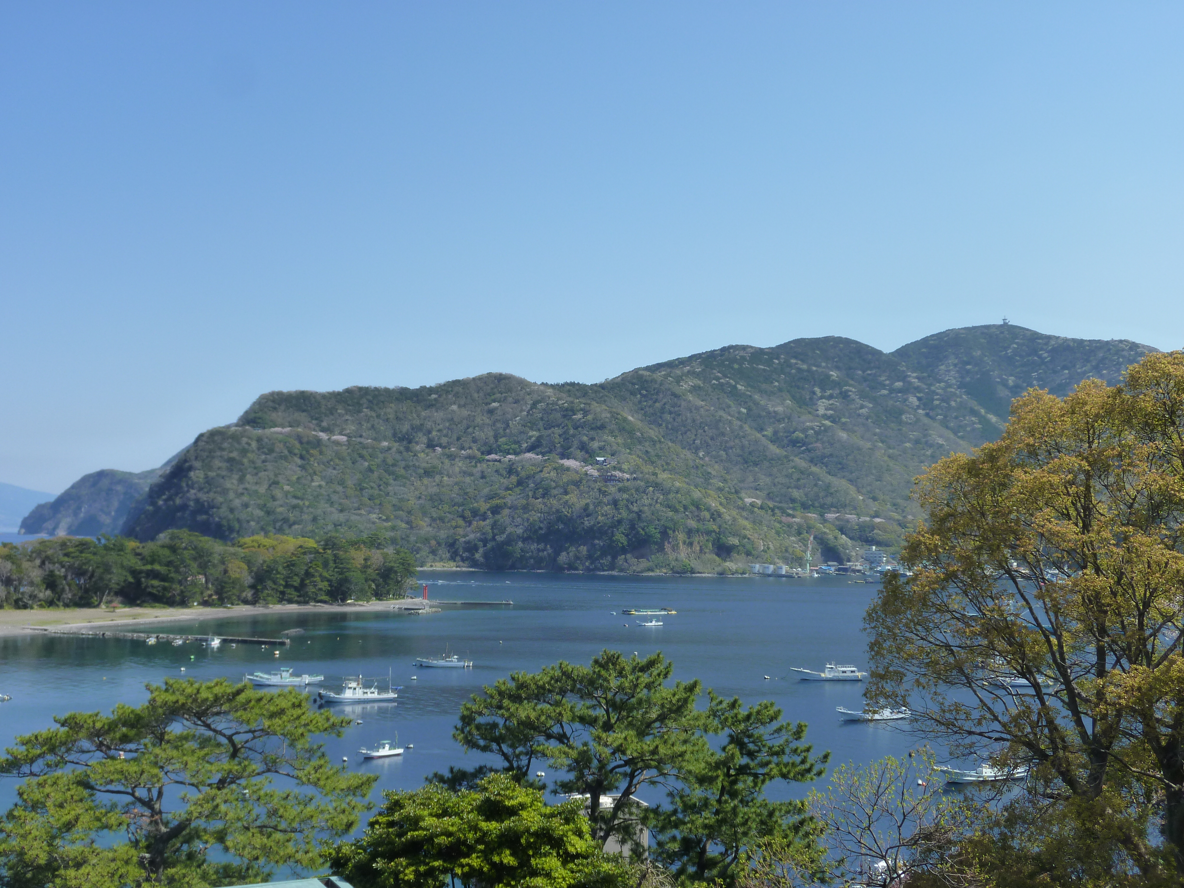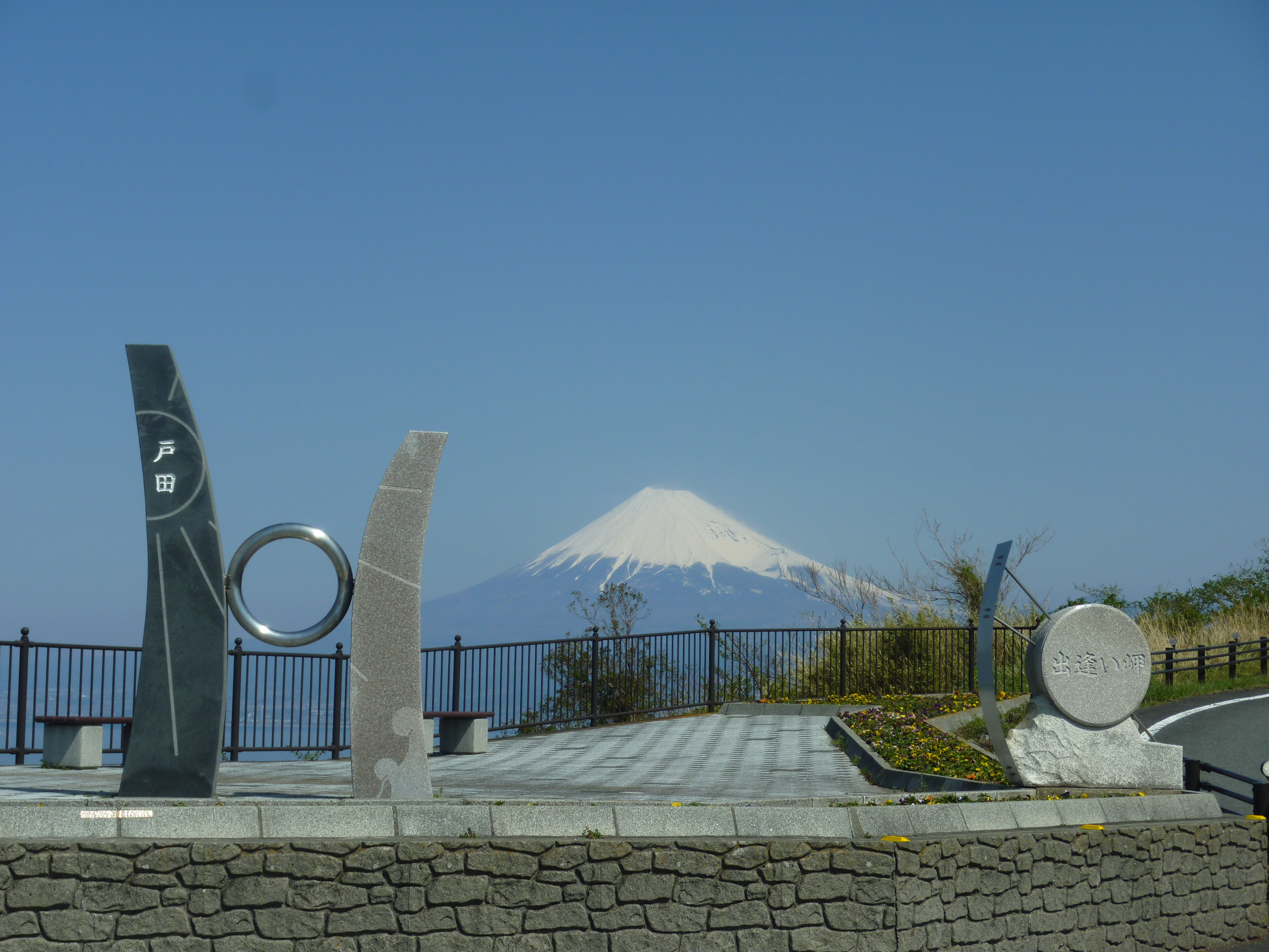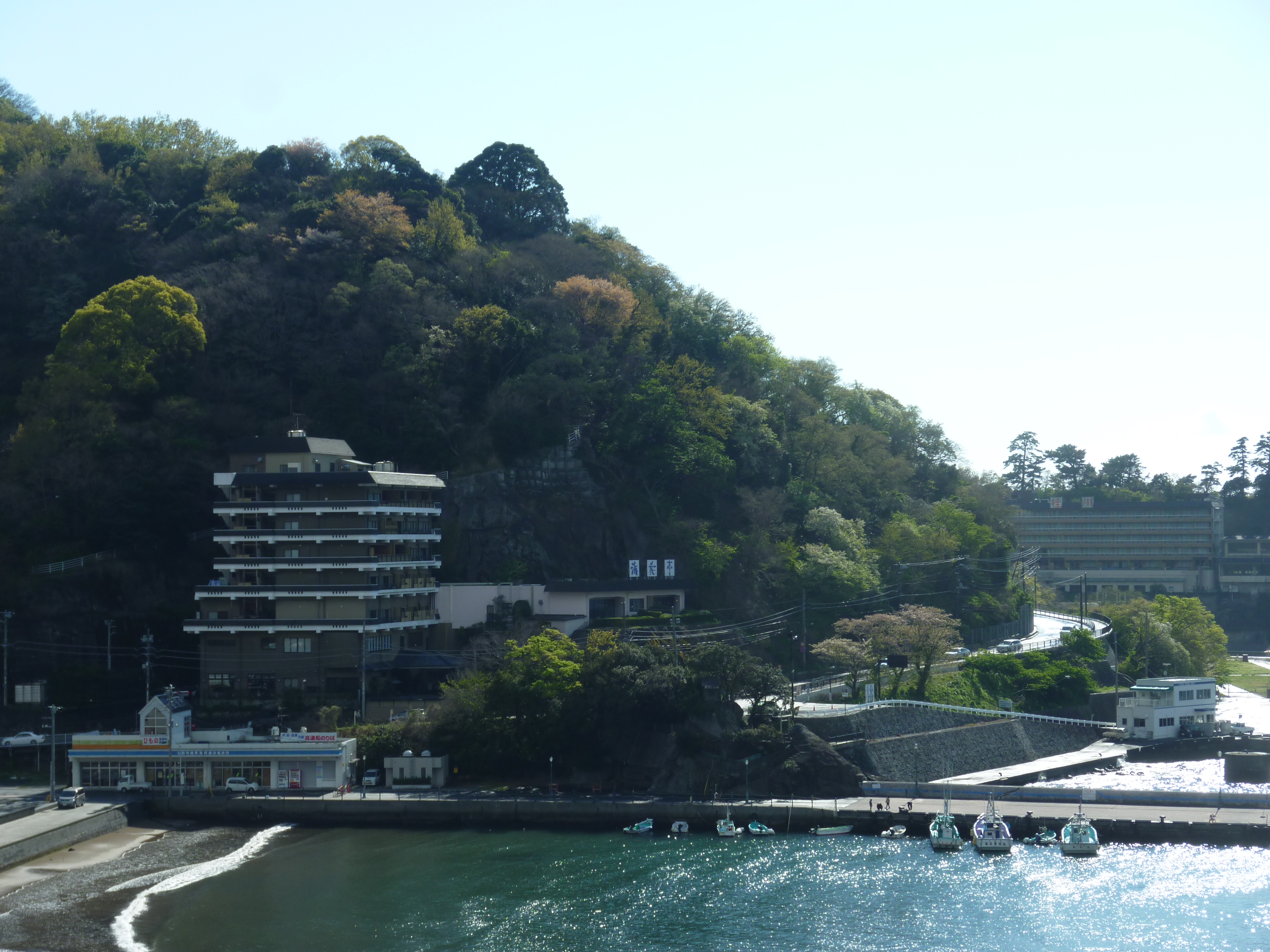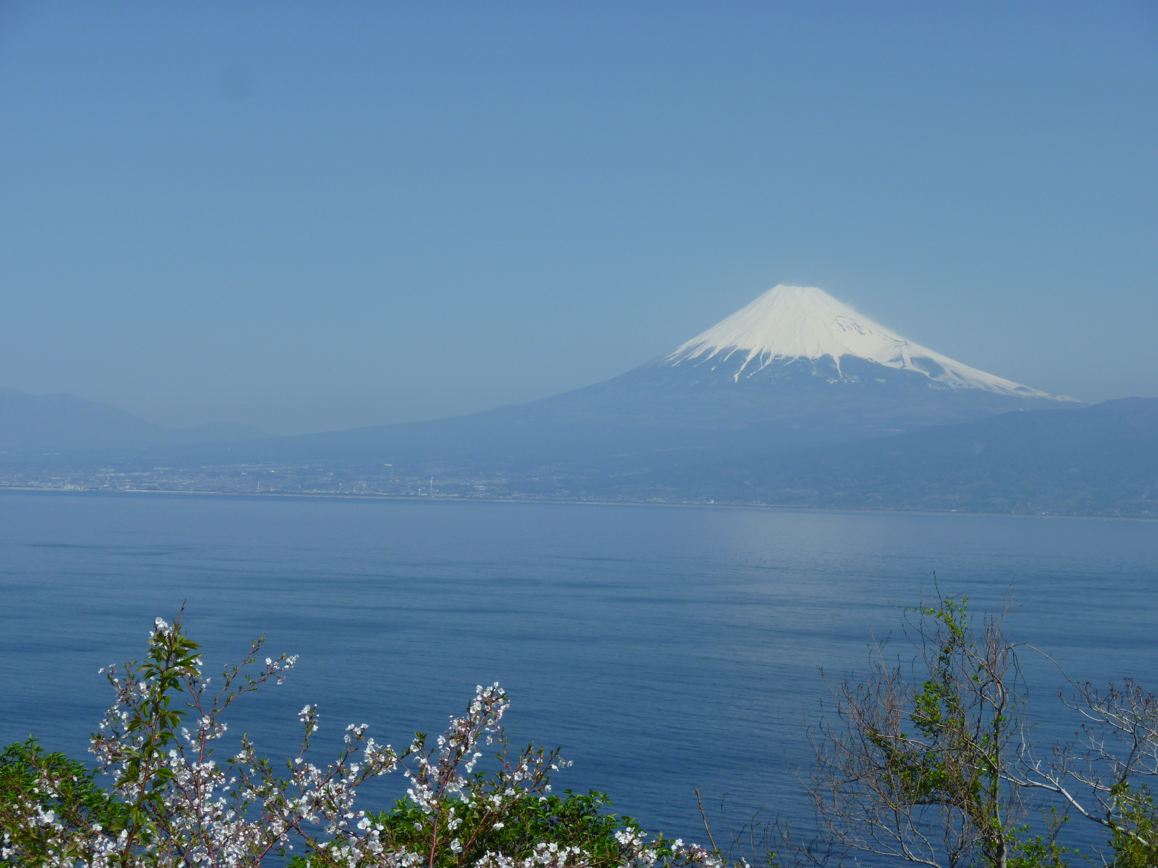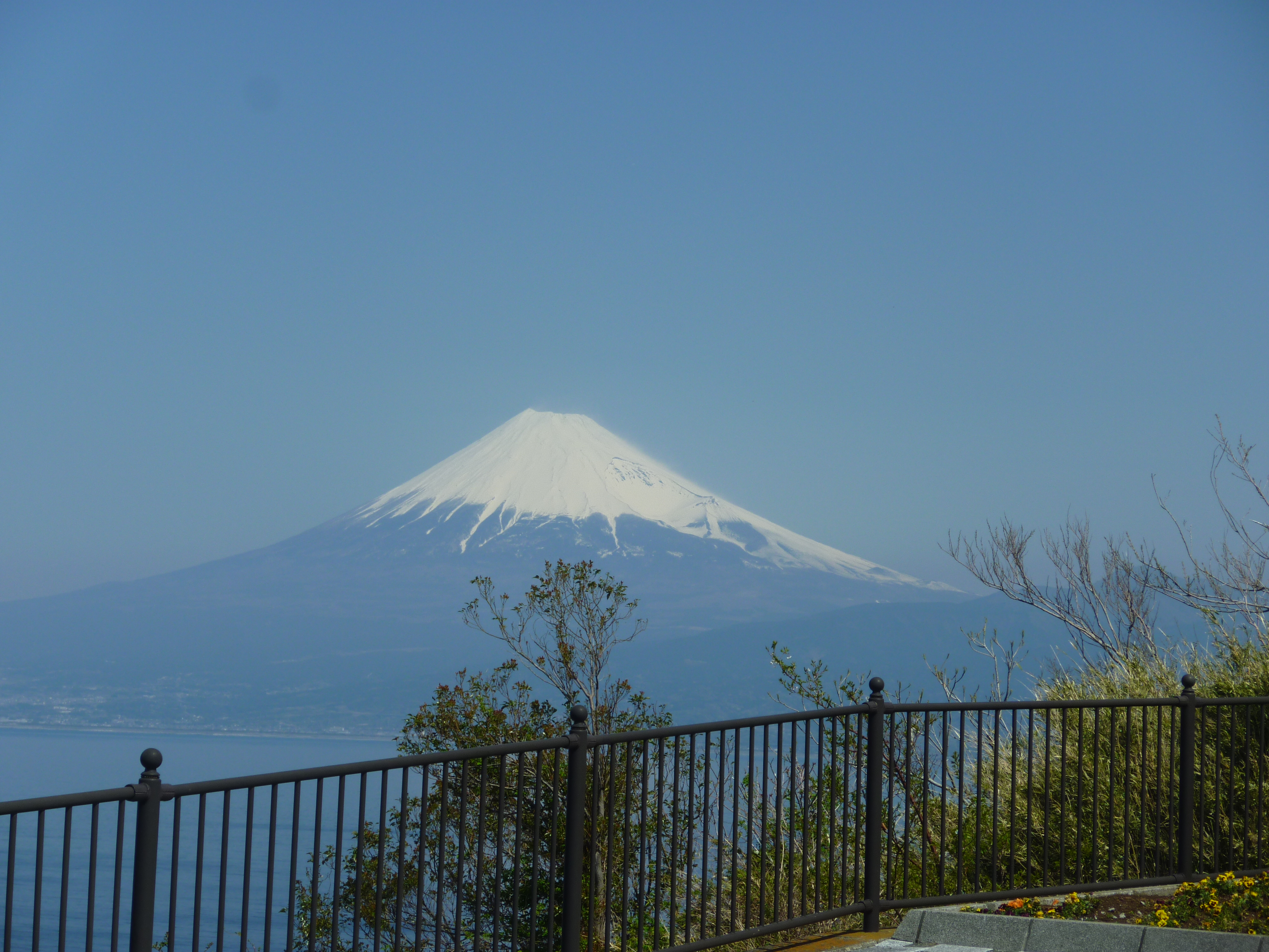 Early morning on April 6, Sunday, Mr. Kihara (my wife’s brother-in-law) and his daughter, Erico came to pick up us to travel to the hotel [土肥マリンホテル (海音亭)] at 静岡県伊豆市土肥 in Izu Peninsula. It was a long drive from Kikuna through Metro high ways and winding mountain roads. There was drizzling and the sky was cloudy. The peak of Fuji mountain was hid behind cloud, unfortunately.