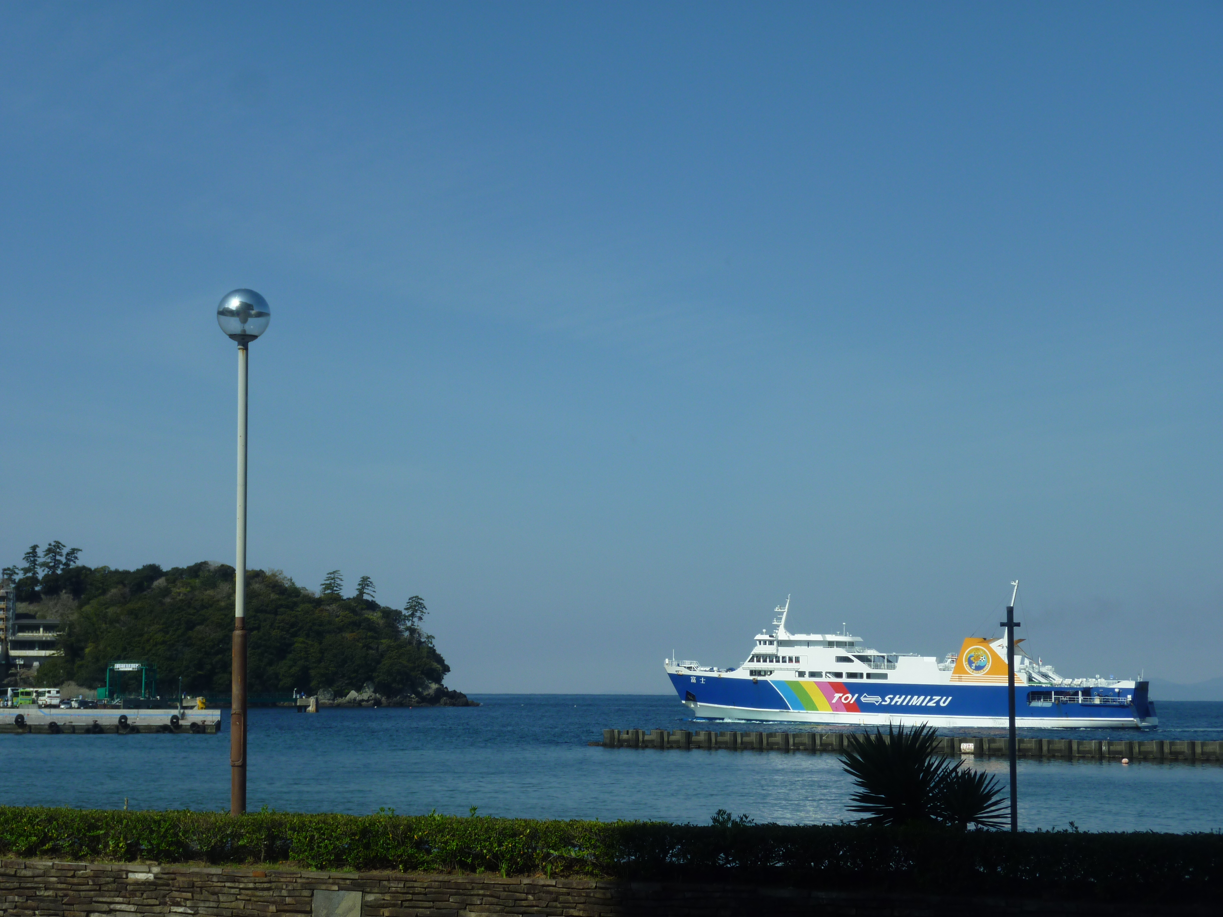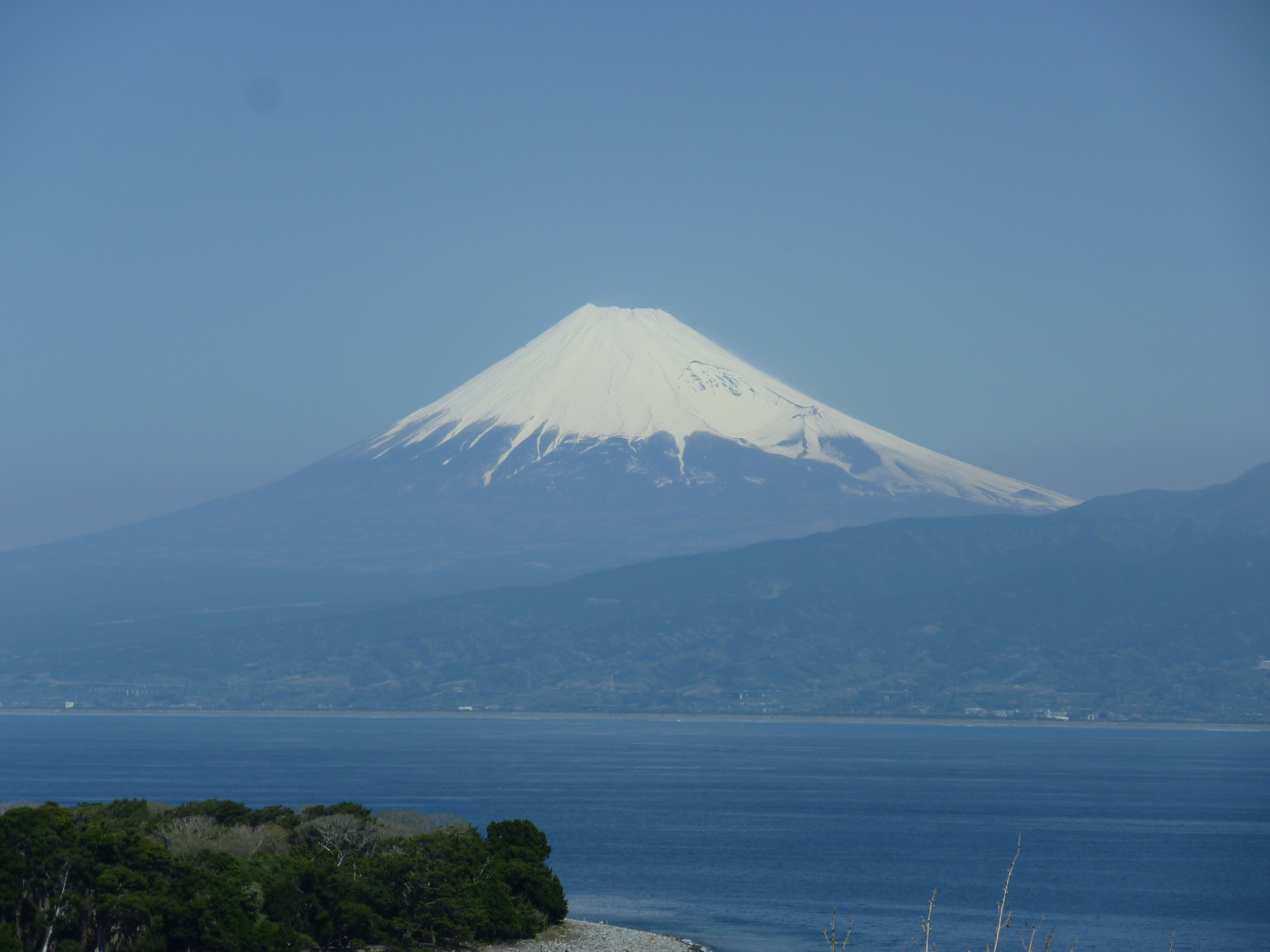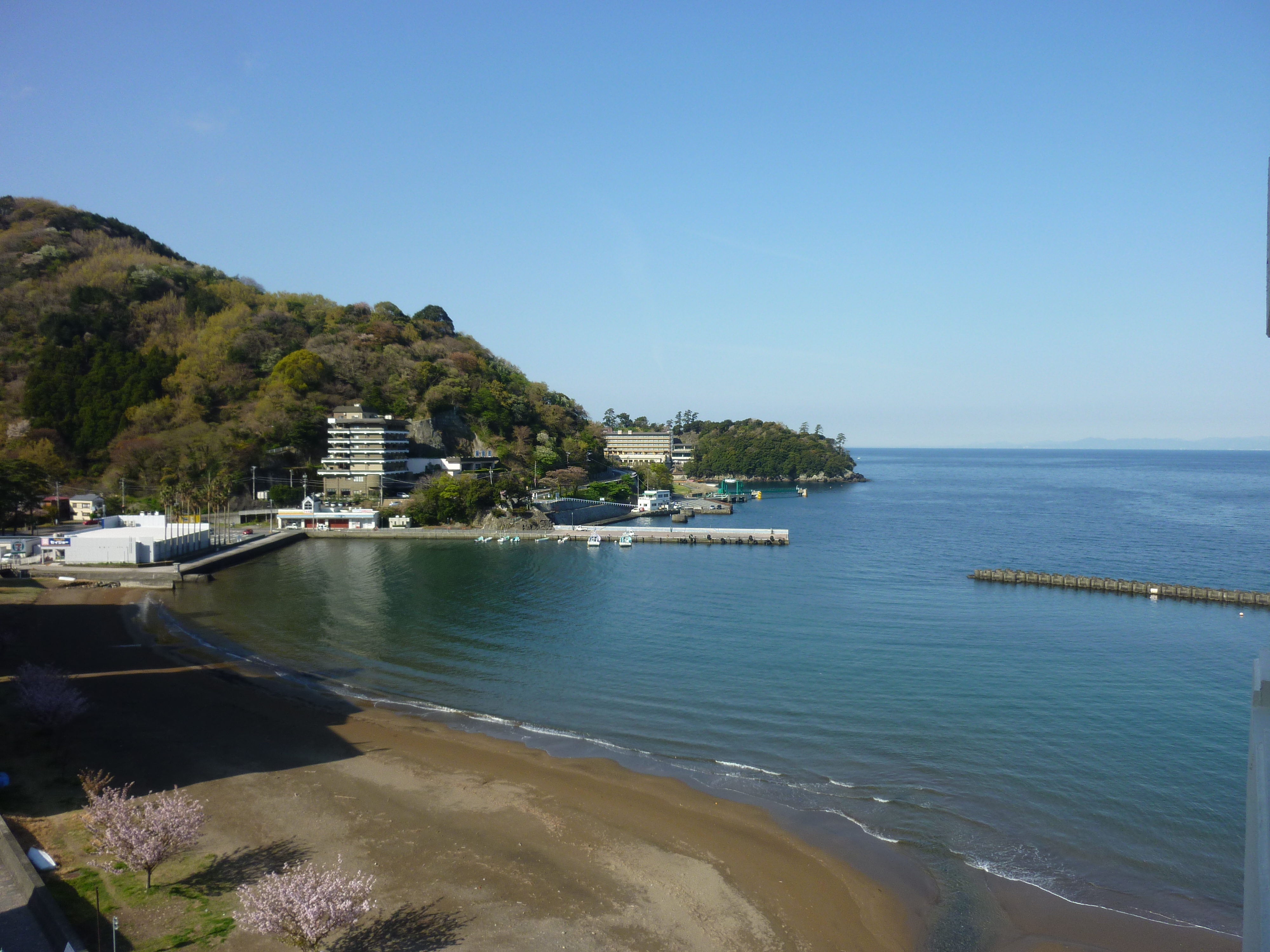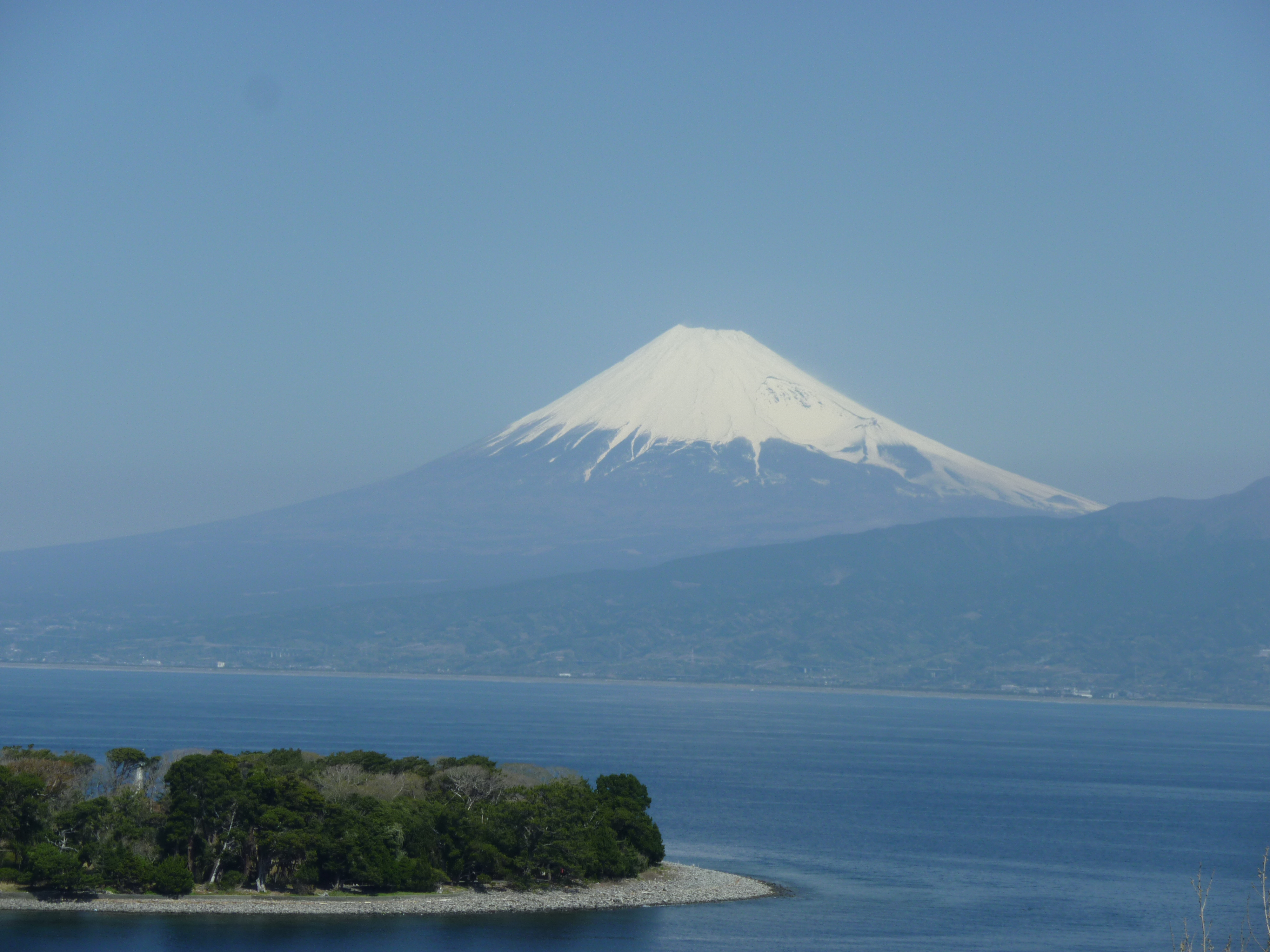 Early morning on April 6, Sunday, Mr. Kihara (my wife’s brother-in-law) and his daughter, Erico came to pick up us to travel to the hotel [土肥マリンホテル (海音亭)] at 静岡県伊豆市土肥 in Izu Peninsula. It was a long drive from Kikuna through Metro high ways and winding mountain roads. There was drizzling and the sky was cloudy. The peak of Fuji mountain was hid behind cloud, unfortunately.