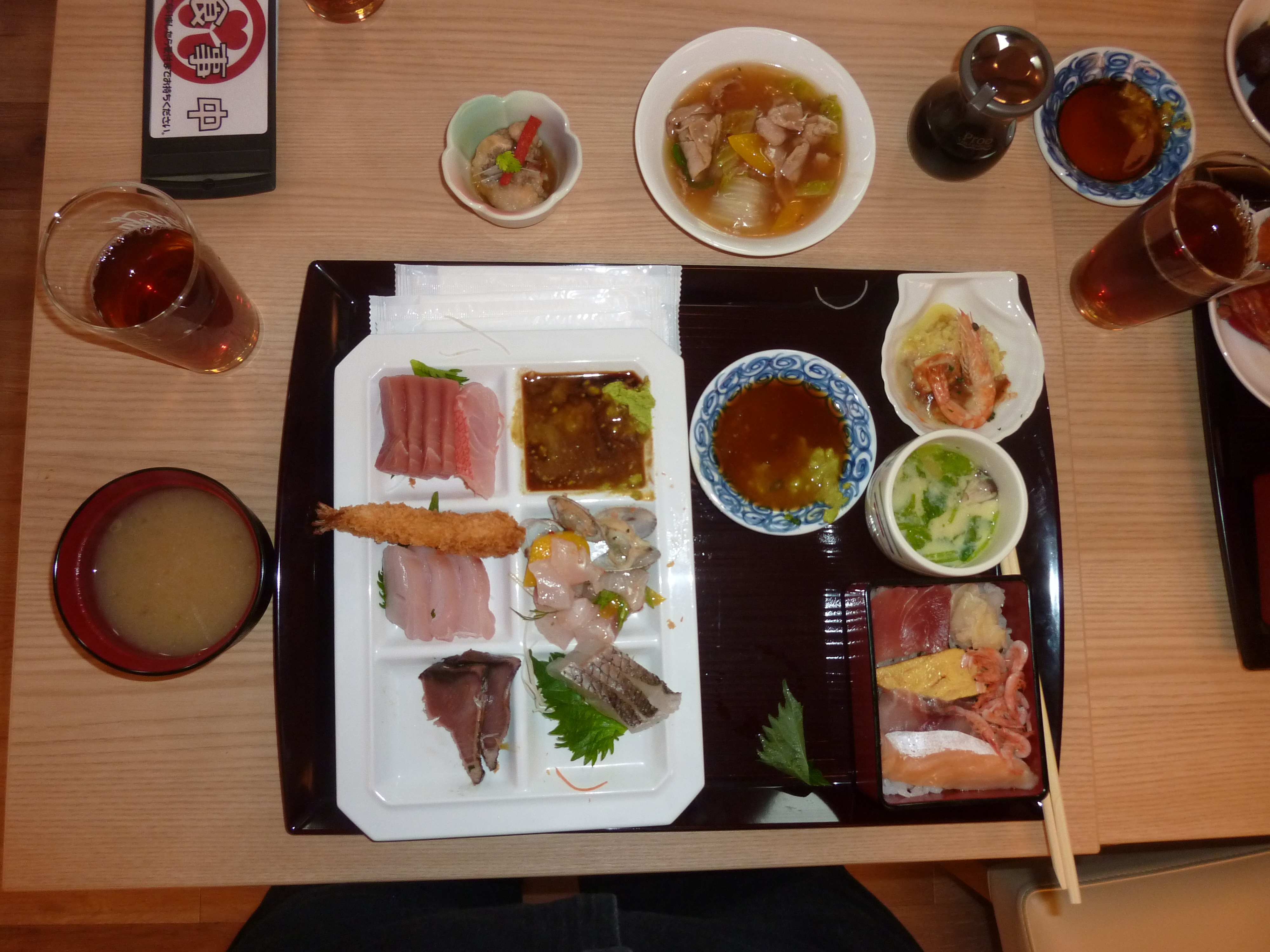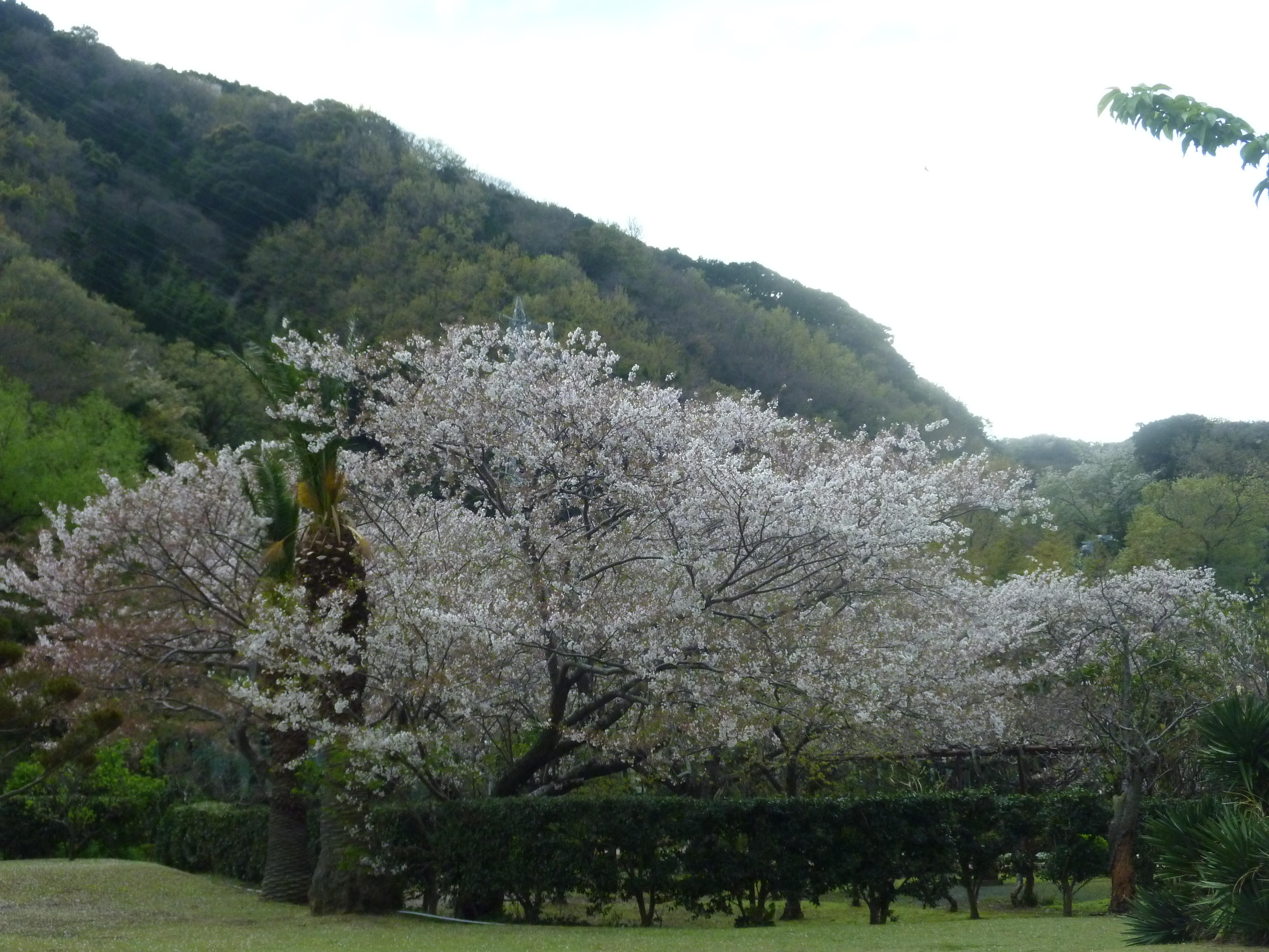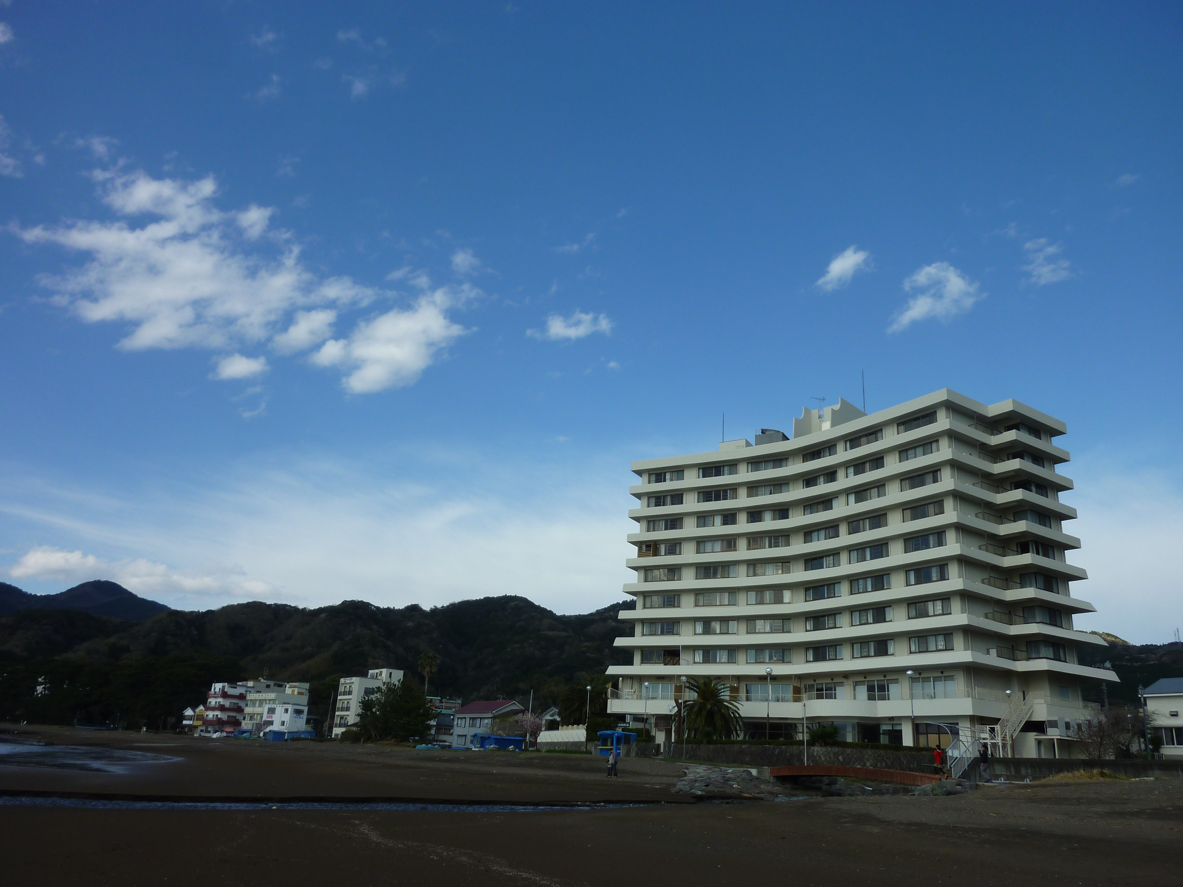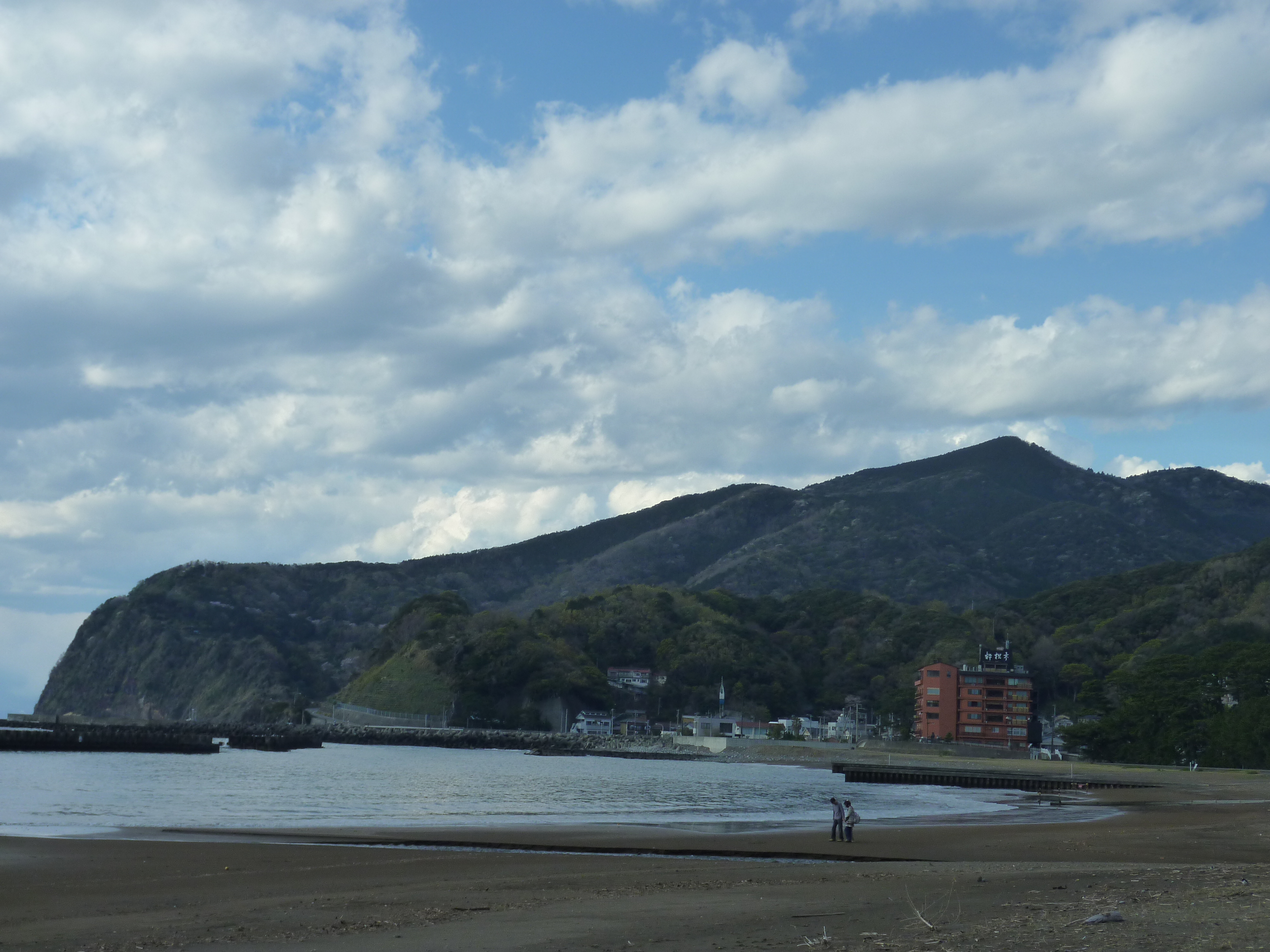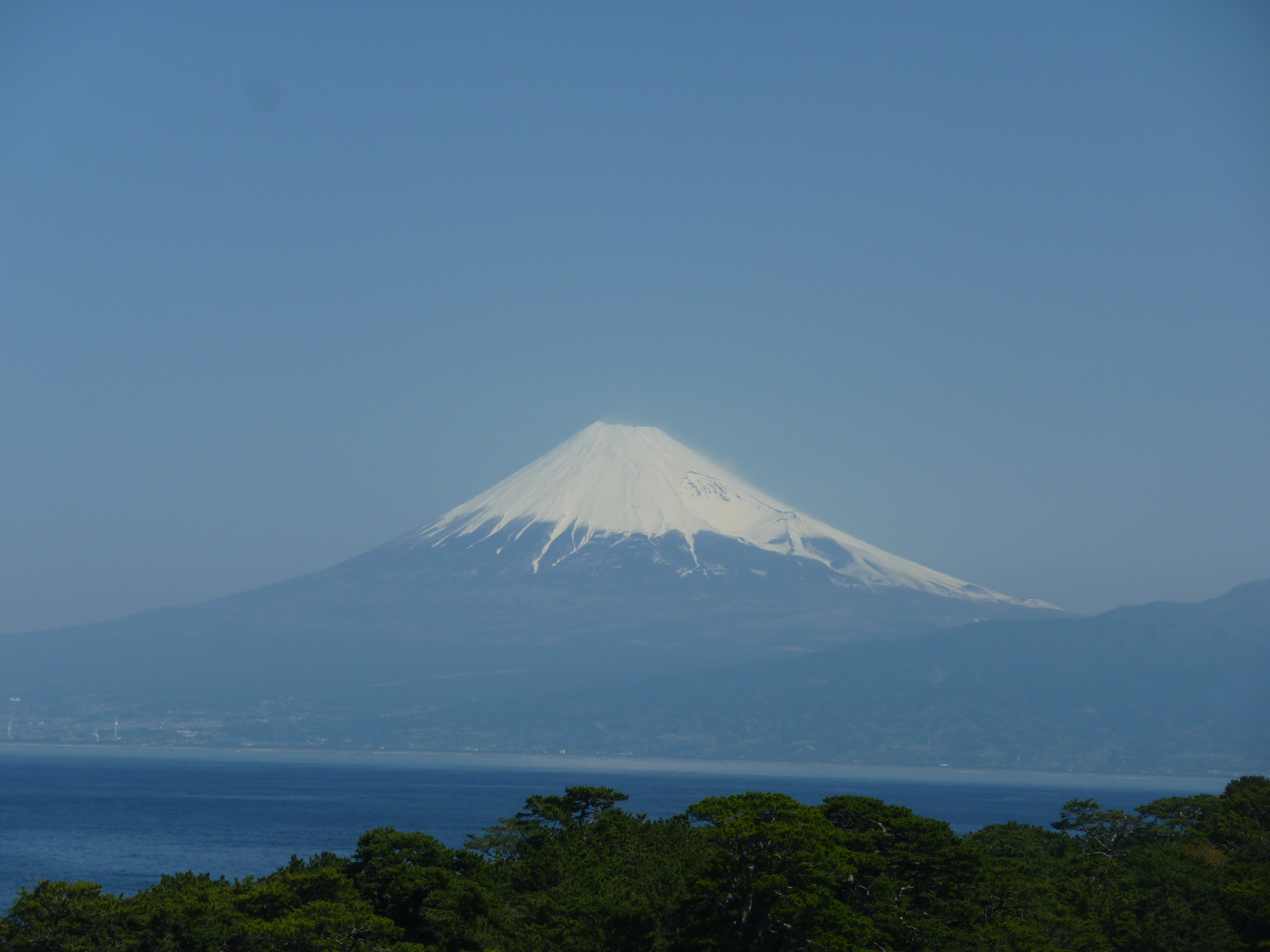 Early morning on April 6, Sunday, Mr. Kihara (my wife’s brother-in-law) and his daughter, Erico came to pick up us to travel to the hotel [土肥マリンホテル (海音亭)] at 静岡県伊豆市土肥 in Izu Peninsula. It was a long drive from Kikuna through Metro high ways and winding mountain roads. There was drizzling and the sky was cloudy. The peak of Fuji mountain was hid behind cloud, unfortunately.