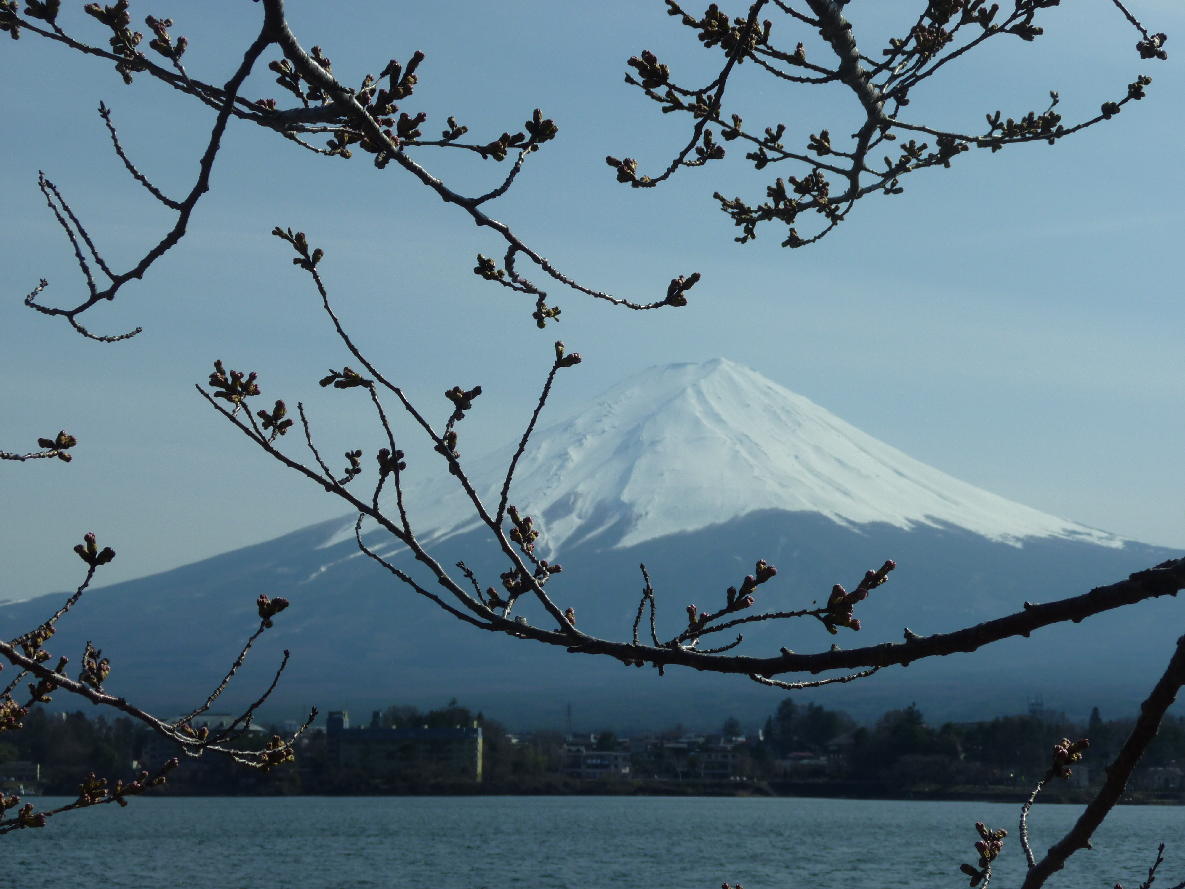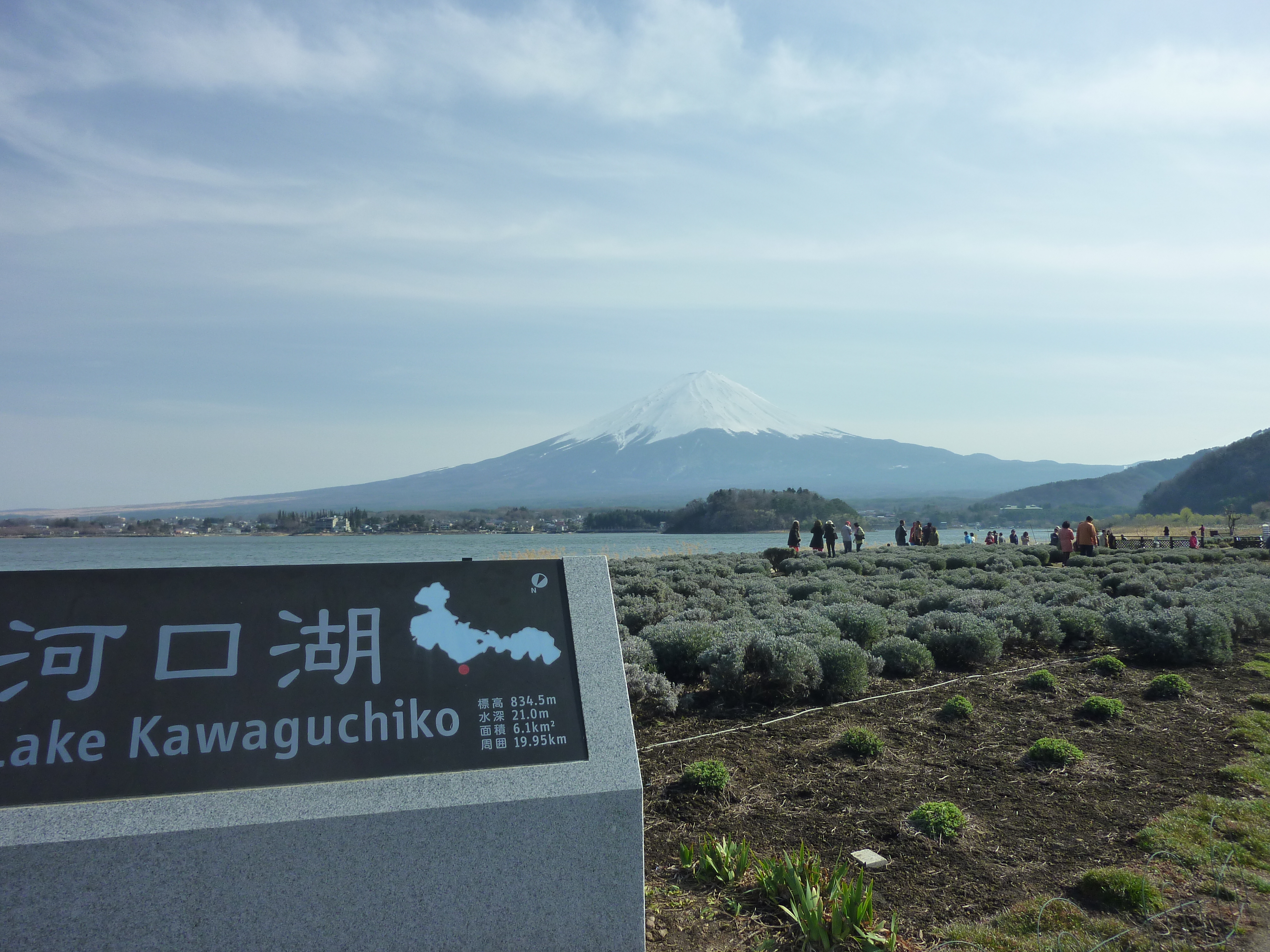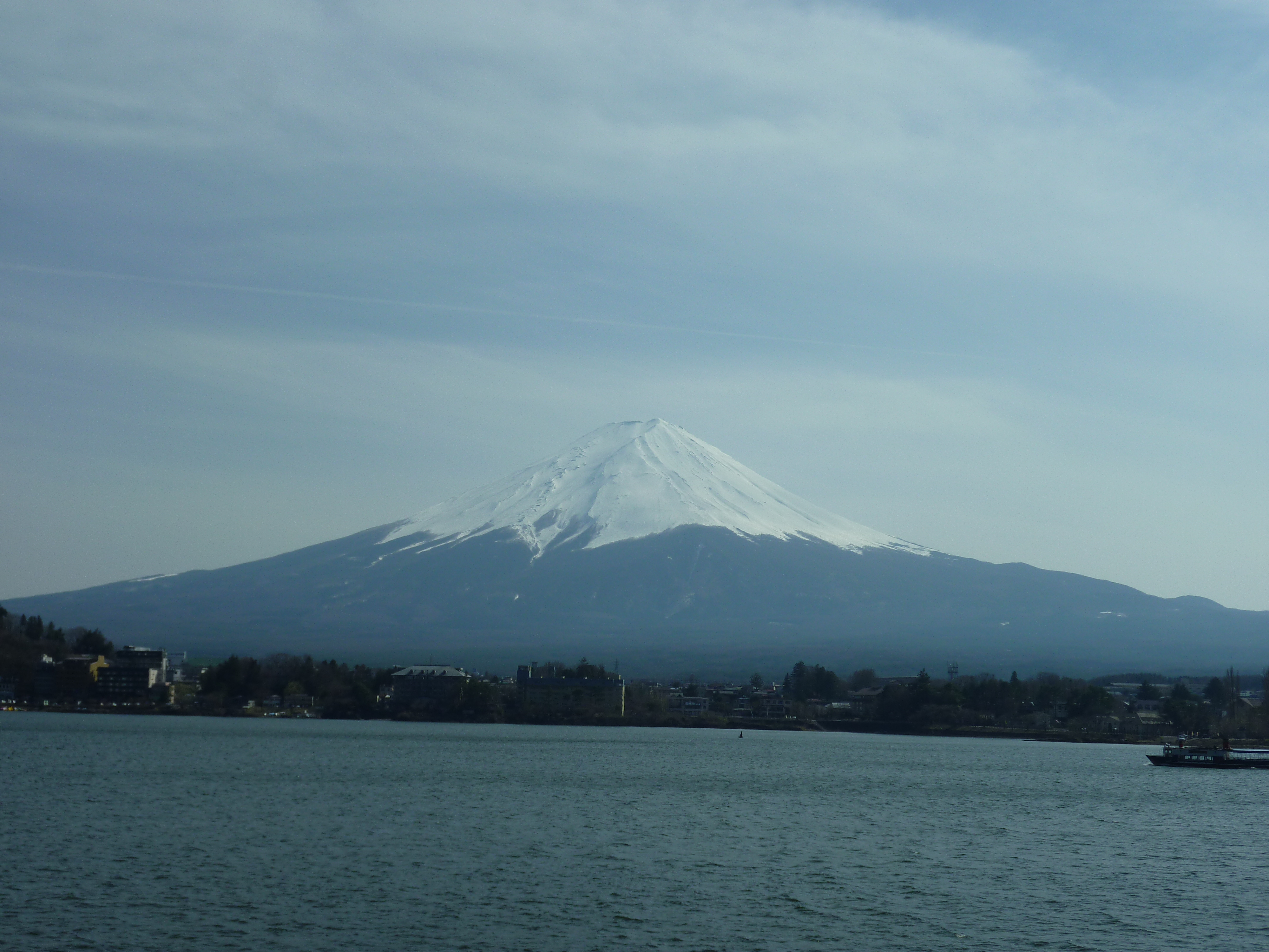 April 7, the next day was sunny with clear sky, a beautiful day to see the Fuji mountain. I had traveled several times to near Fuji mountain but never was able to see the peak because of the weather. We stopped at Lake Yamanaka (山中湖), and Lake Kawaguchi (河口湖).
